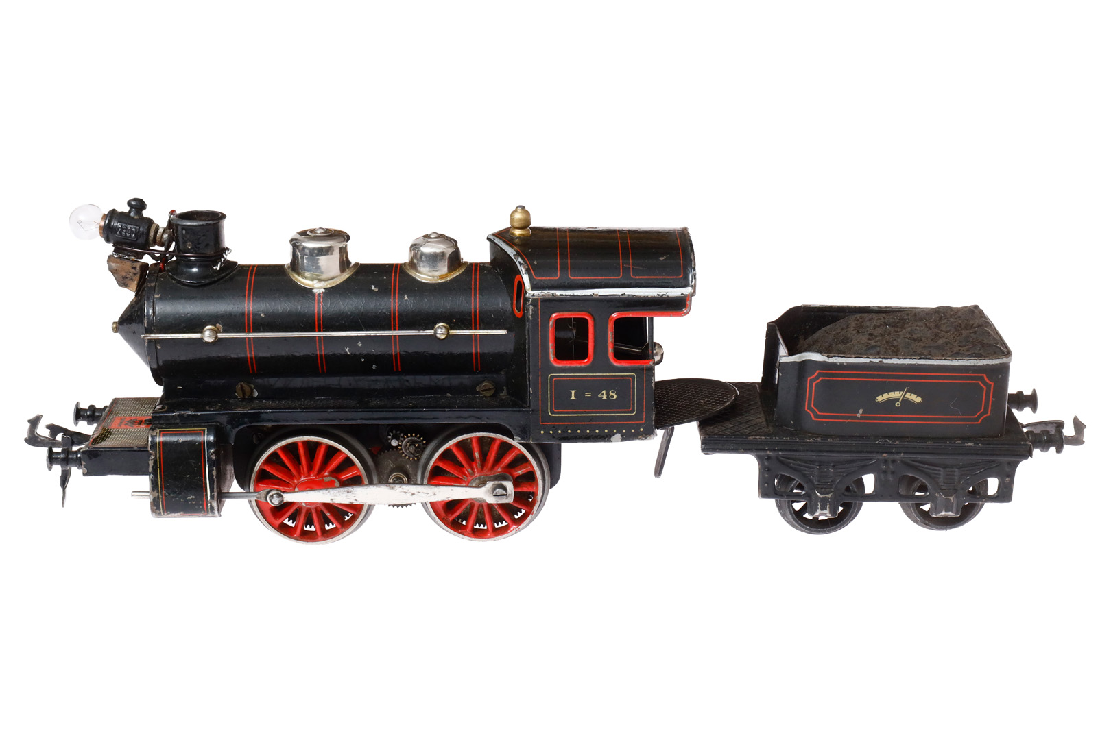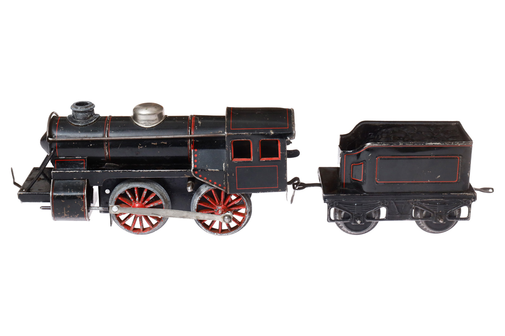 Bing B-Dampflok, mit 2A-Tender, Spur 1, elektr., CL, Stirnlampe lose, Gebrauchsspuren, kleine LS, Z 3