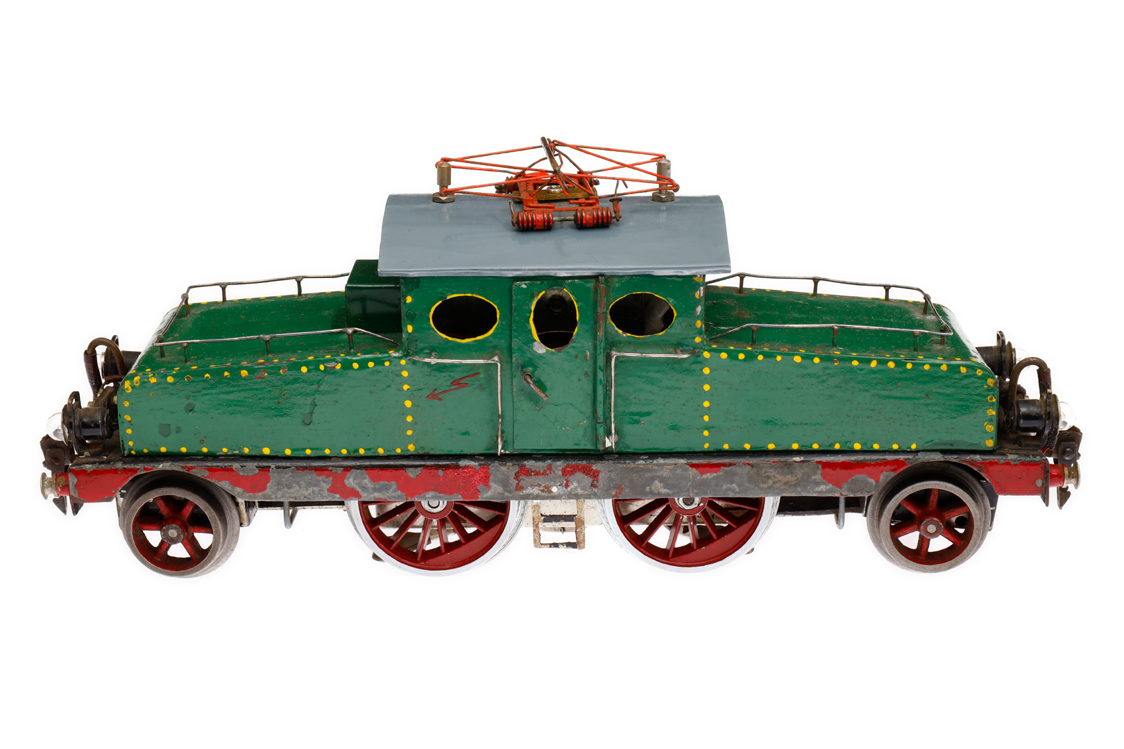 1-B-1 E-Lok, Spur 1, elektr., grün, mit je 2 el. bel. Stirnlampen, LS und Alterungsspuren, Z 3