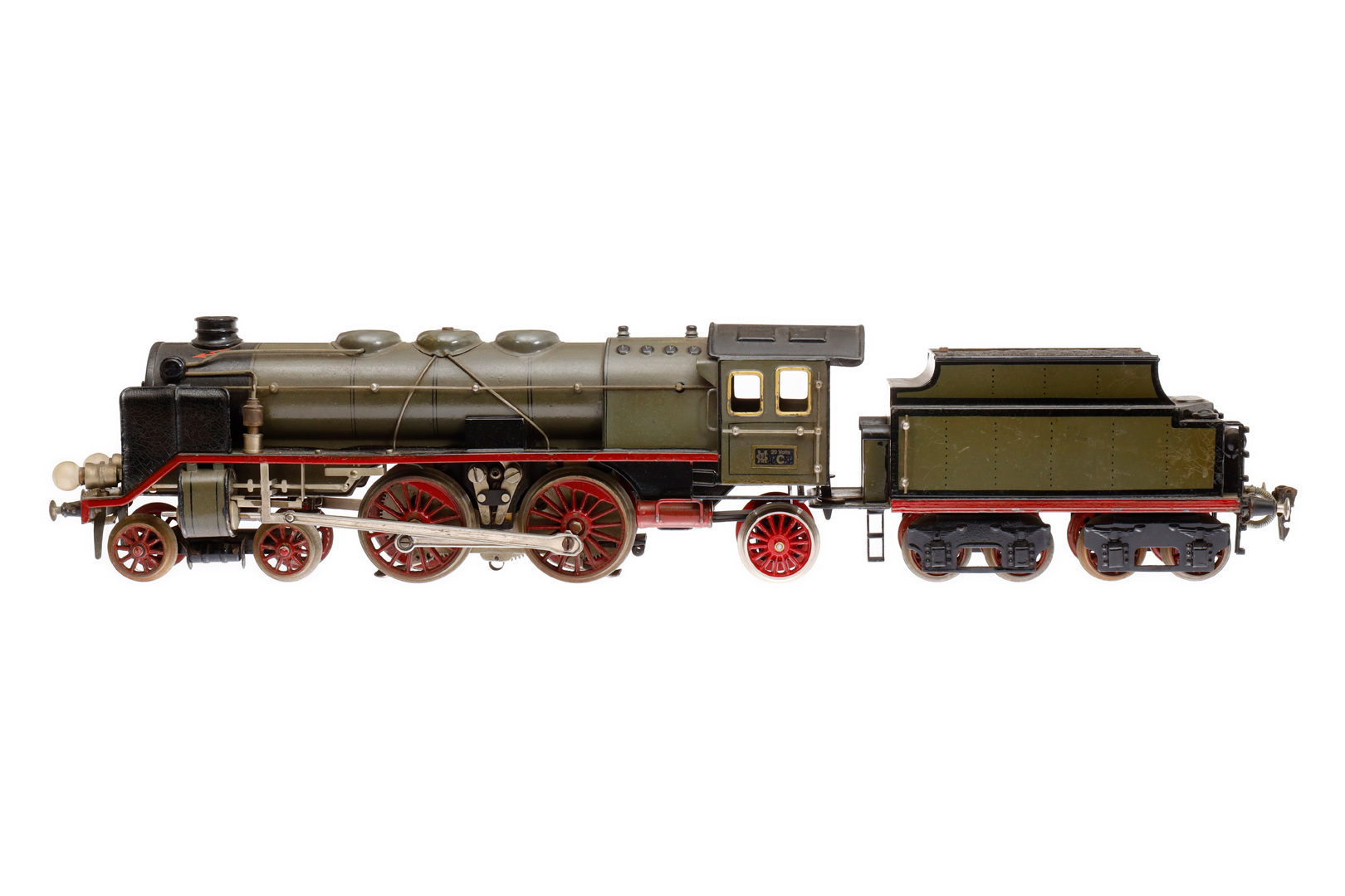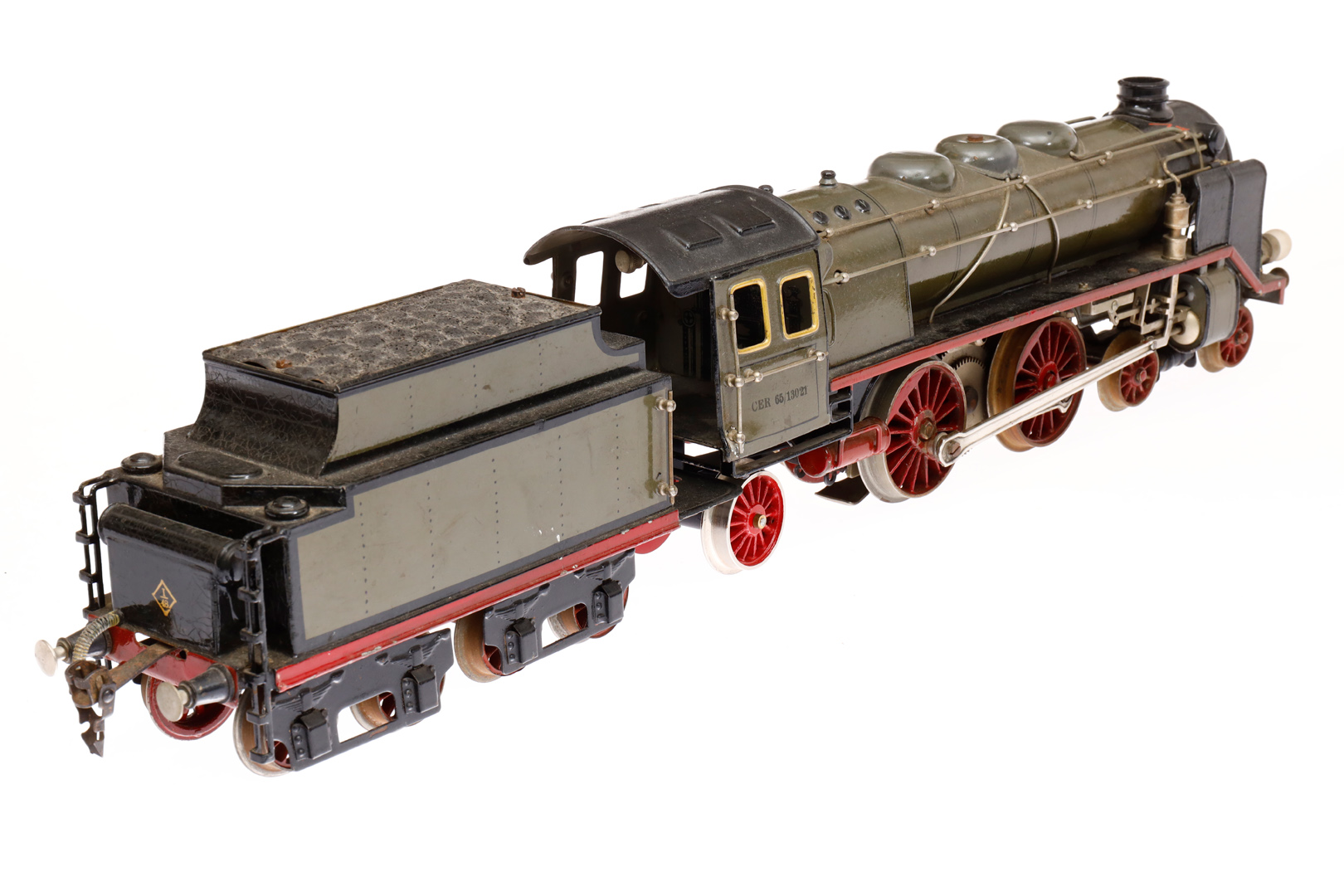 Märklin 2-B-1 Dampflok CER 65/13021, Spur 1, elektr., grau/schwarz, mit Tender, kW und 2 el. bel. Stirnlampen, Nachläufer ersetzt, LS tw ausgeb., gealterter Lack, sonst noch Z 2-3