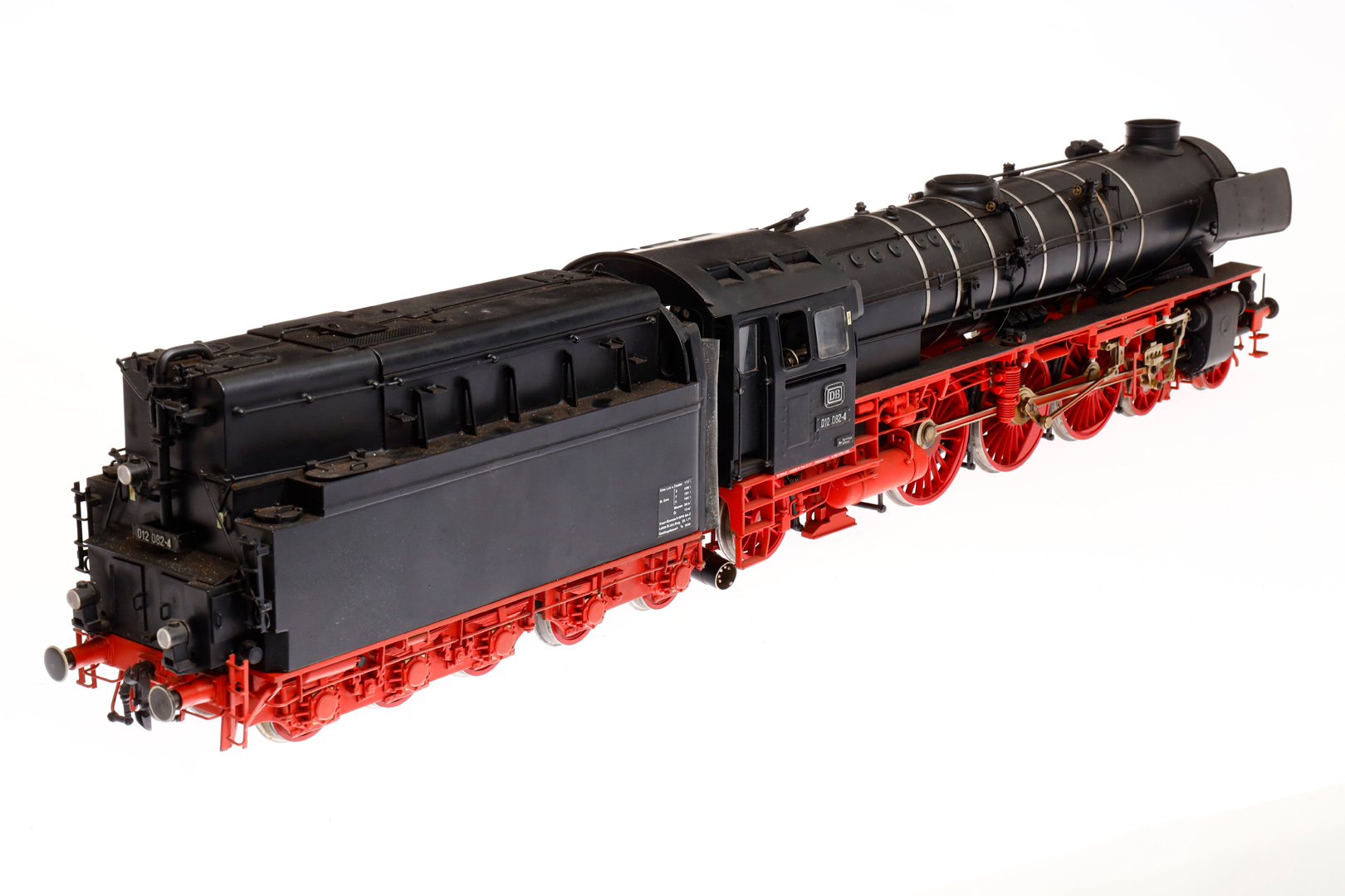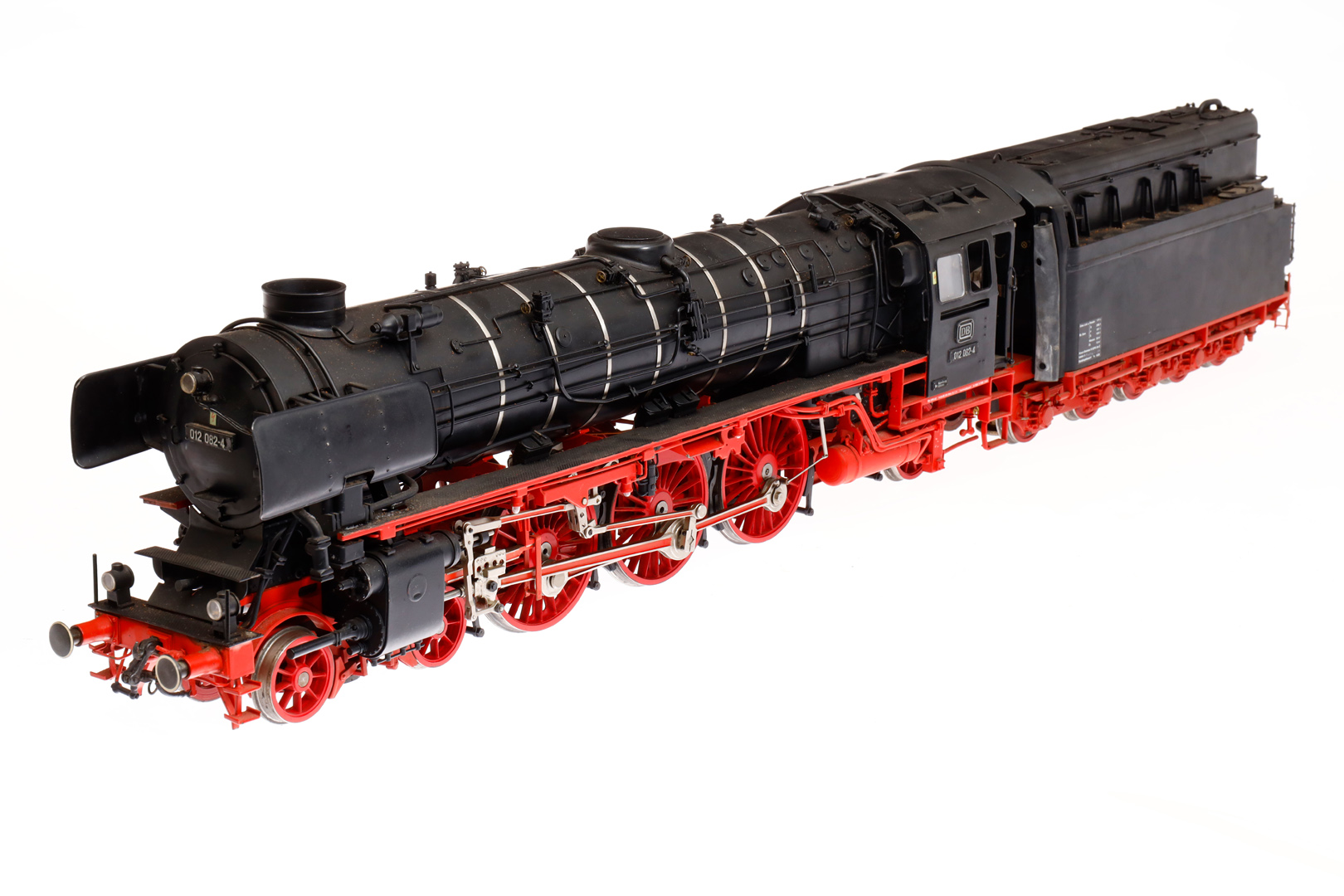 Bockholt/Fulgurex 2-C-1 Schlepptenderlok ”012 082-4”, Spur 1, elektr., Tender mit Mittelschleifer, schwarz, Maschinennr. 48, LS und Alterungsspuren, Kleinteile tw besch., sonst noch Z 2-3