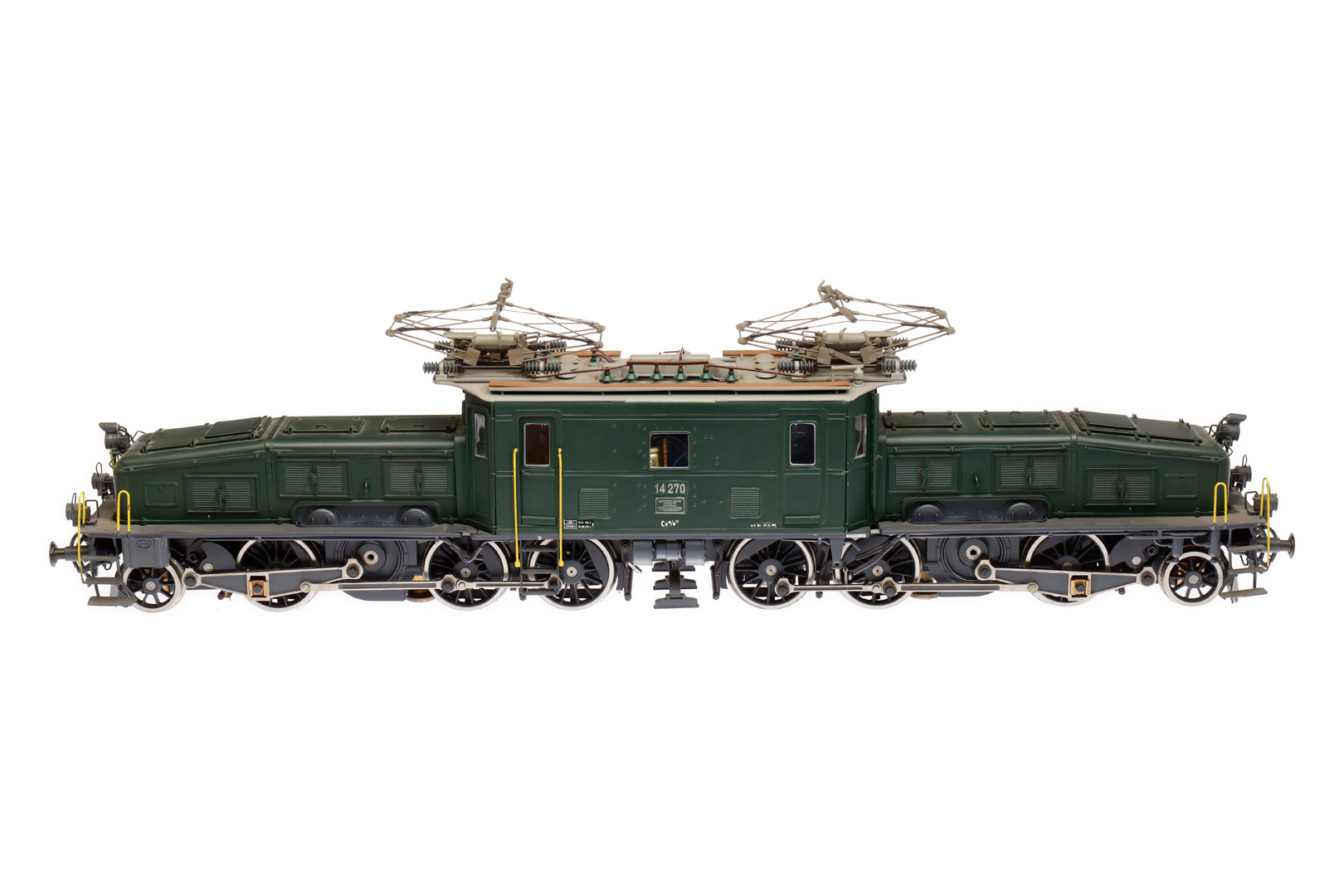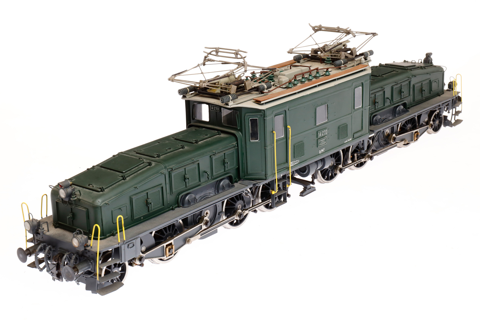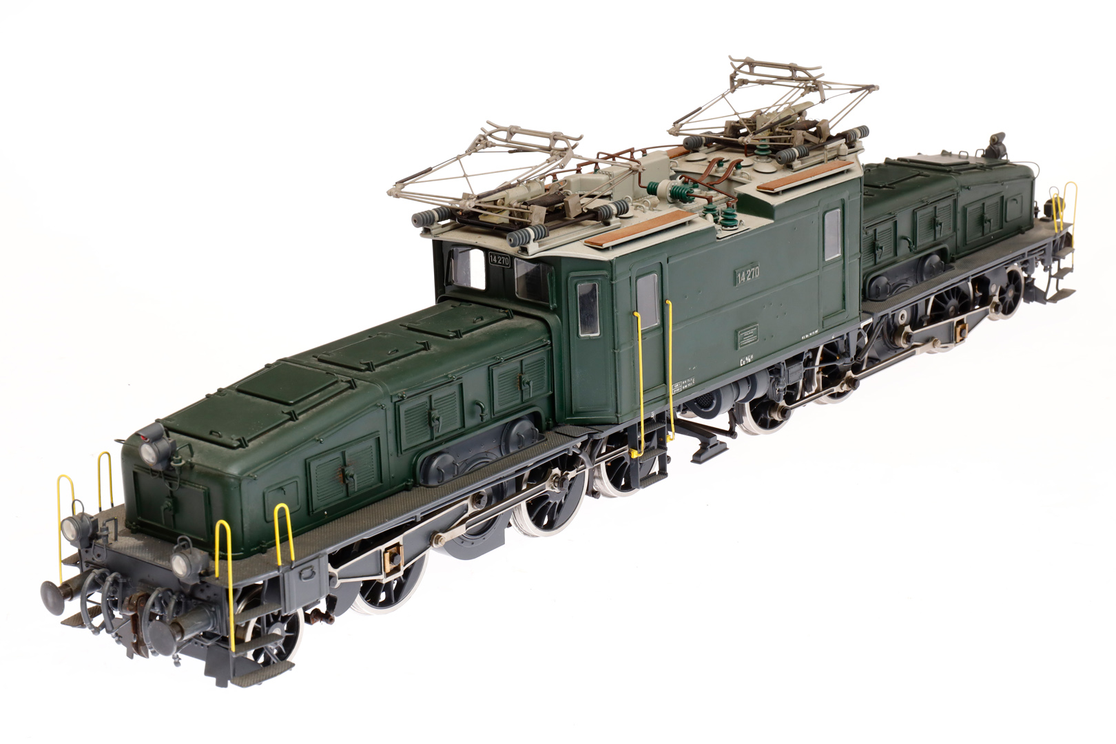 Bockholt/Fulgurex Krokodil ”14270”, Spur 1, elektr., mit Mittelschleifer, grün, LS und Alterungsspuren, Kleinteile tw besch., in Holzkiste, ohne Innenverpackung, Z 2-3