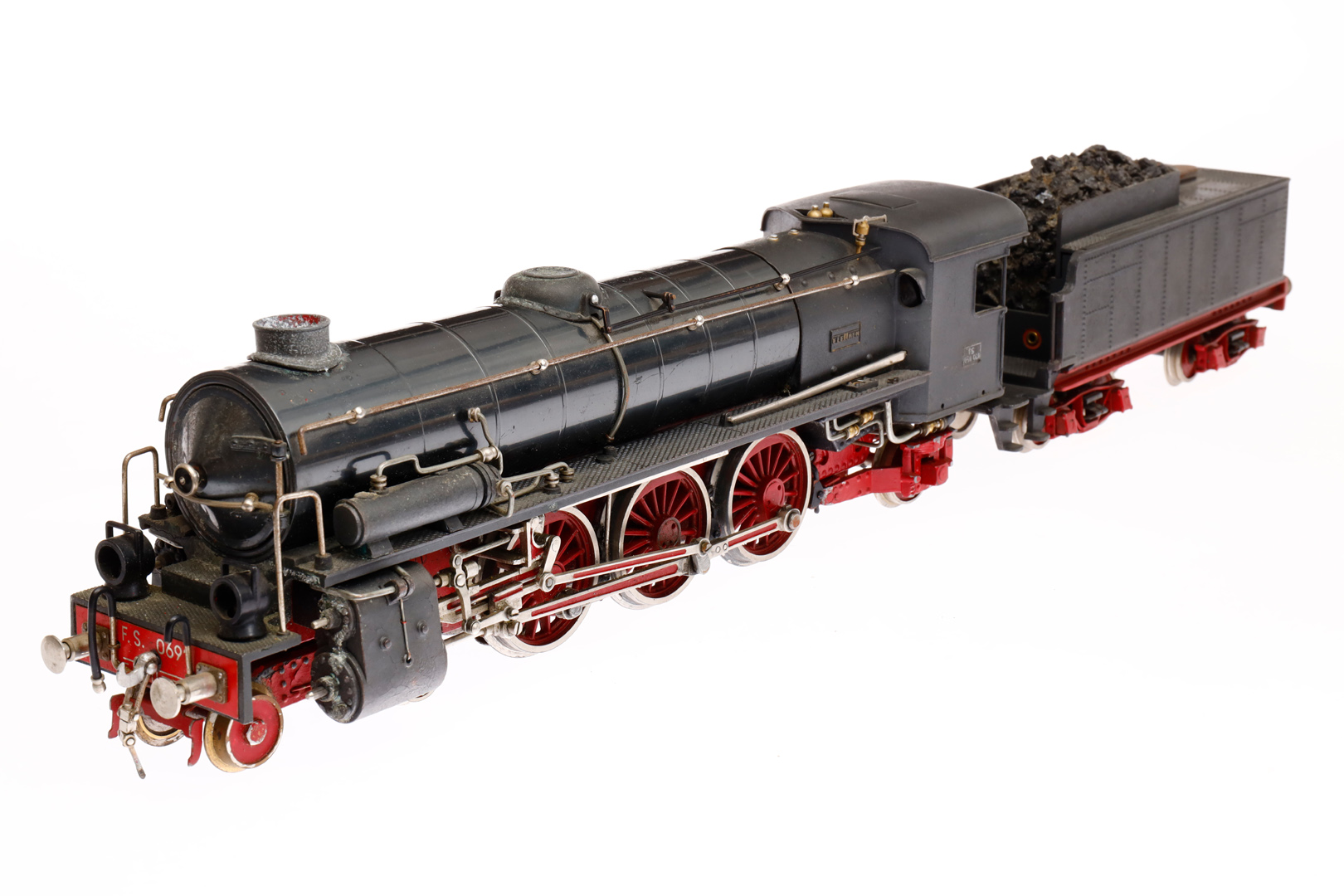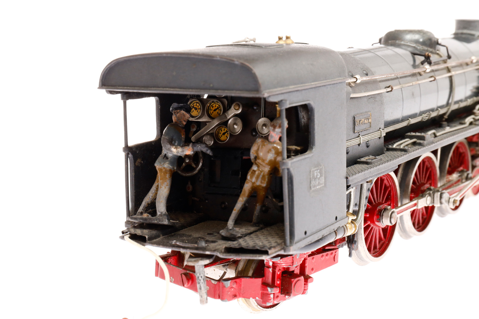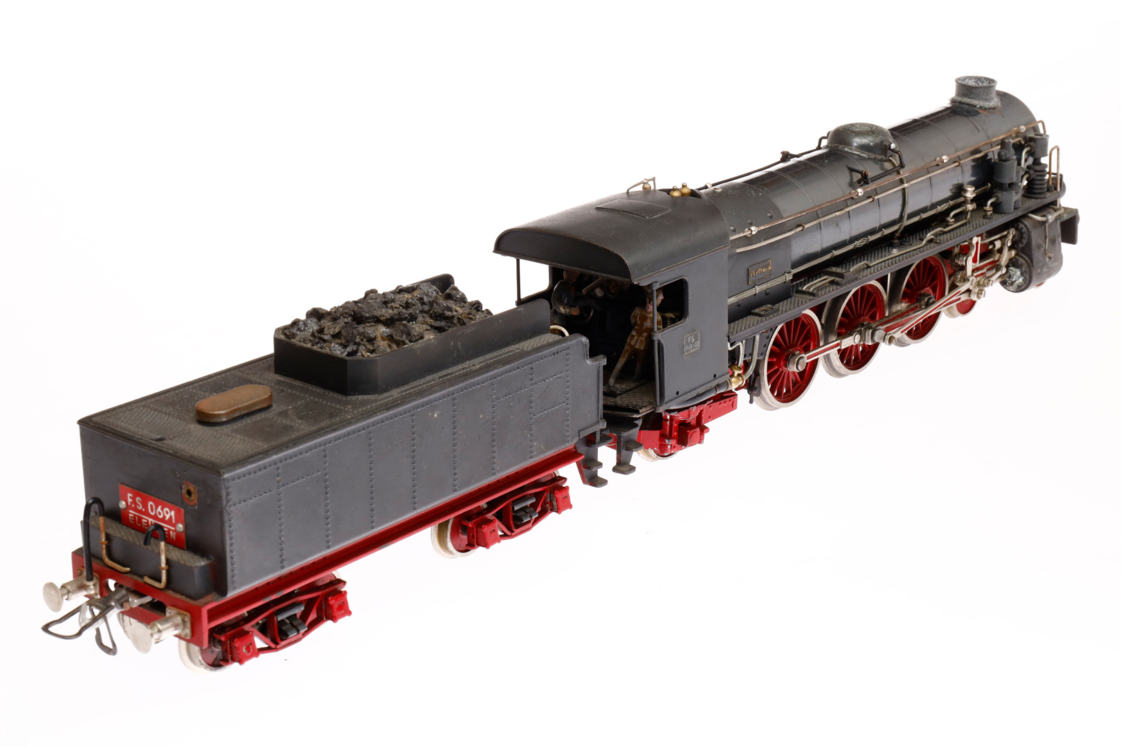 Elettren 2-C-1 Dampflok FS 0691, Spur 0, elektr., dunkelgrau, mit Tender und 2 el. bel. Stirnlampen, LS, Alterungs- und Gebrauchsspuren, Z 3