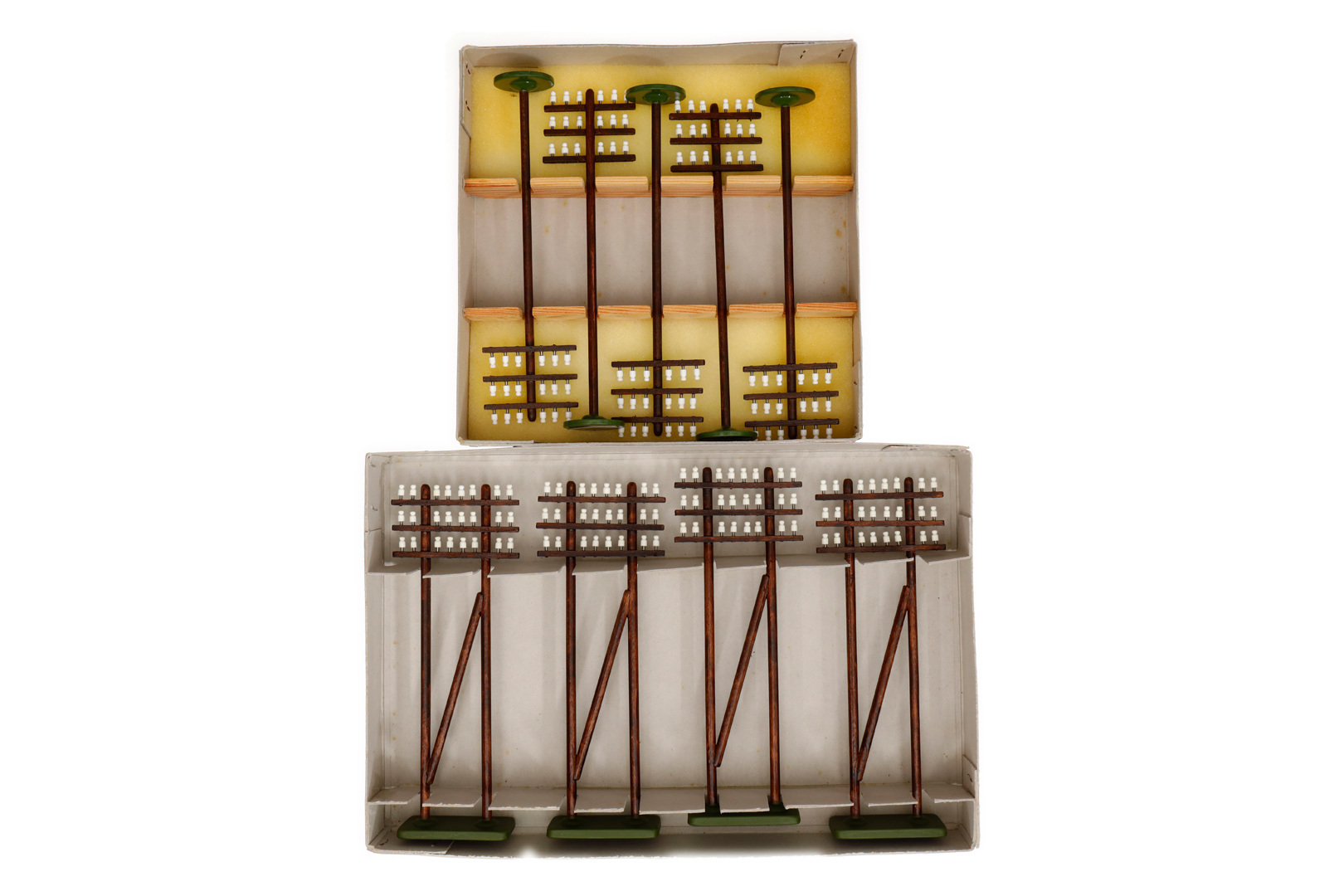 2 Hakla Kartons 9608, gefüllt mit Telegraphenmasten, Alterungsspuren, Z 1-2