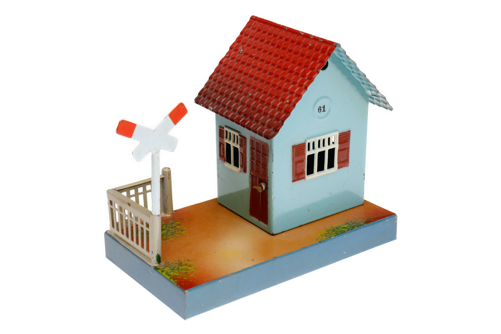 Märklin Wärterhaus 2161, HL, mit elektr. Beleuchtung und Andreaskreuz, LS und gealterter Lack, L 13,5, Z 2-3