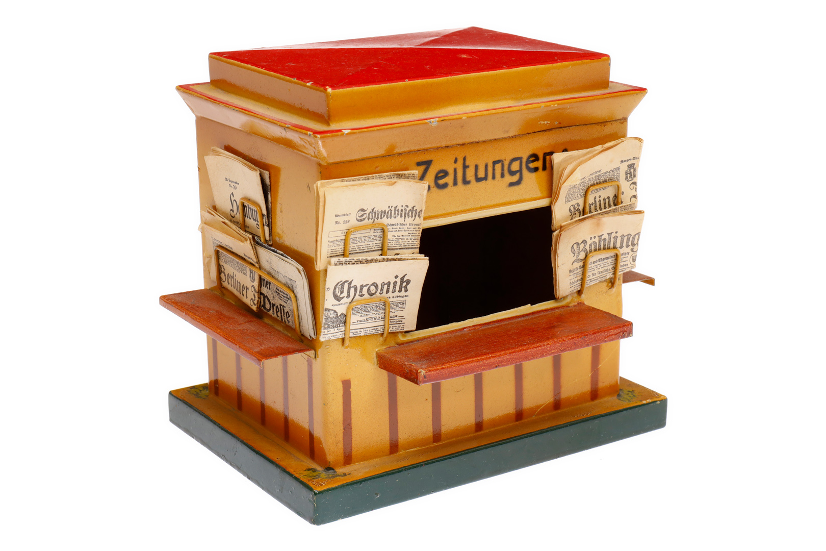 Kibri Kiosk, HL, mit alten Zeitungen und 1 AT, LS und Alterungsspuren, L 13, Z 2