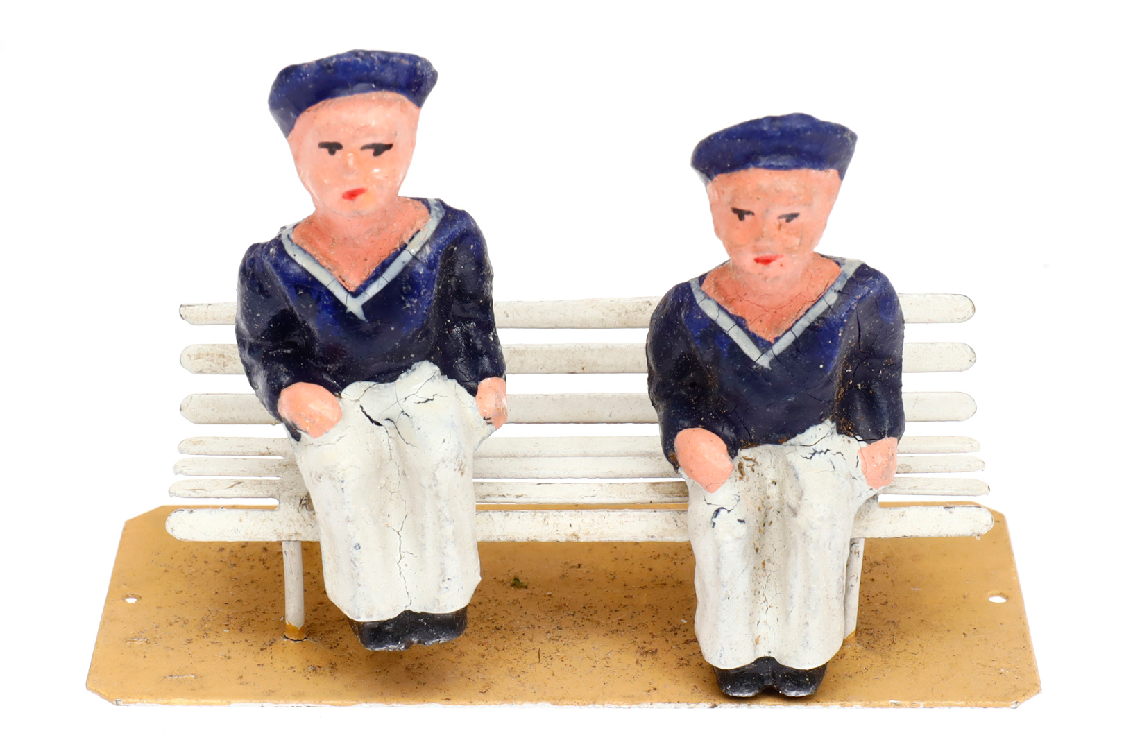 Märklin Sitzbank, HL, dazu 2 Sitzmatrosen, Masse, L 6,5, Z 3