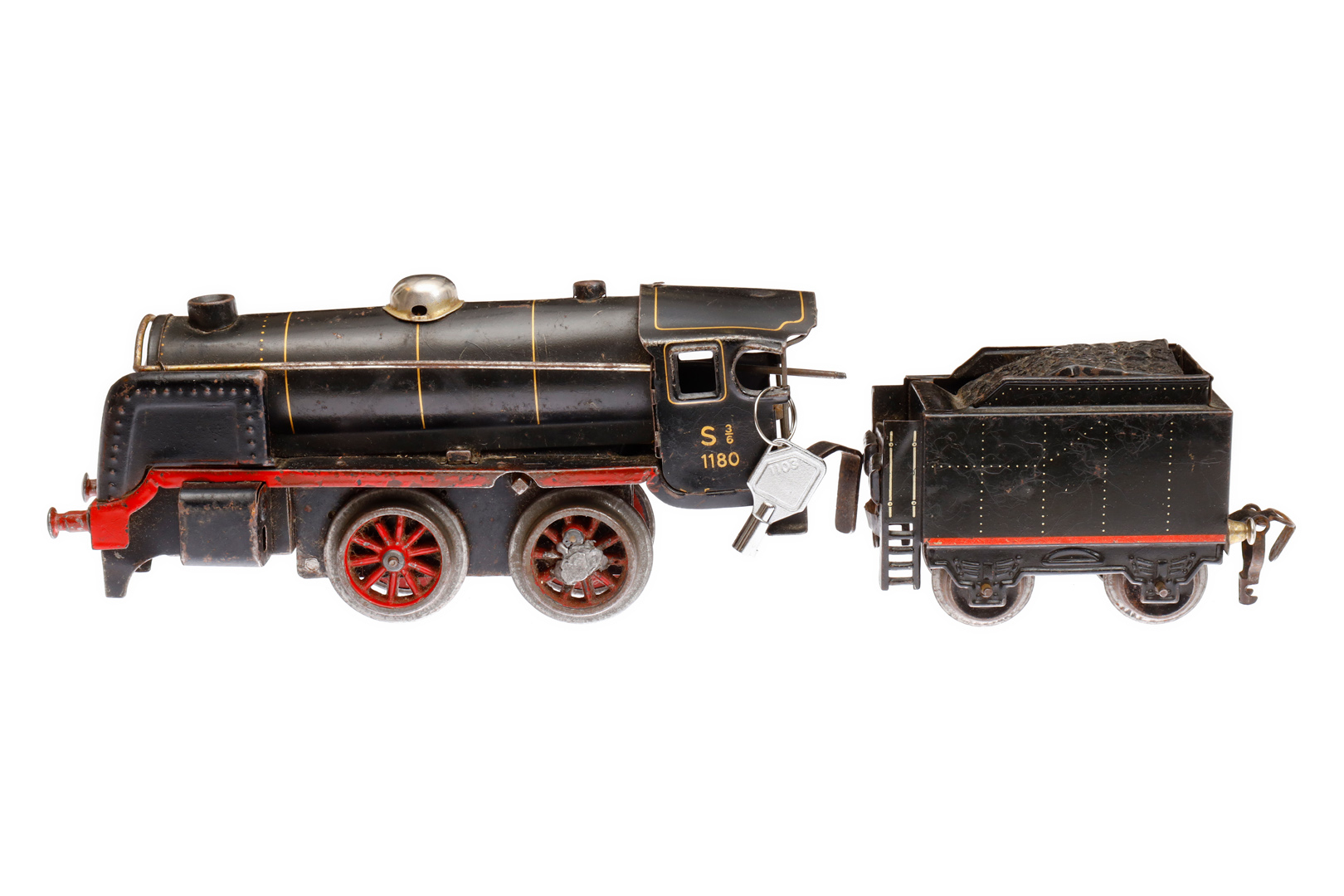 Kraus/Fandor B-Dampflok 1180, Spur 0, schwarz, mit Tender, Uhrwerk def., Z 3