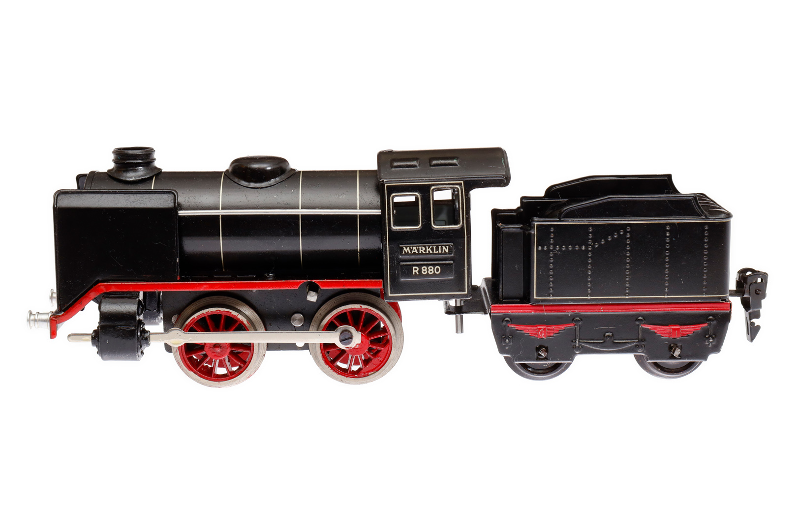 Märklin B-Dampflok R 880, Spur 0, Uhrwerk intakt, schwarz, mit Tender und gW, LS und gealterter Lack, Z 3