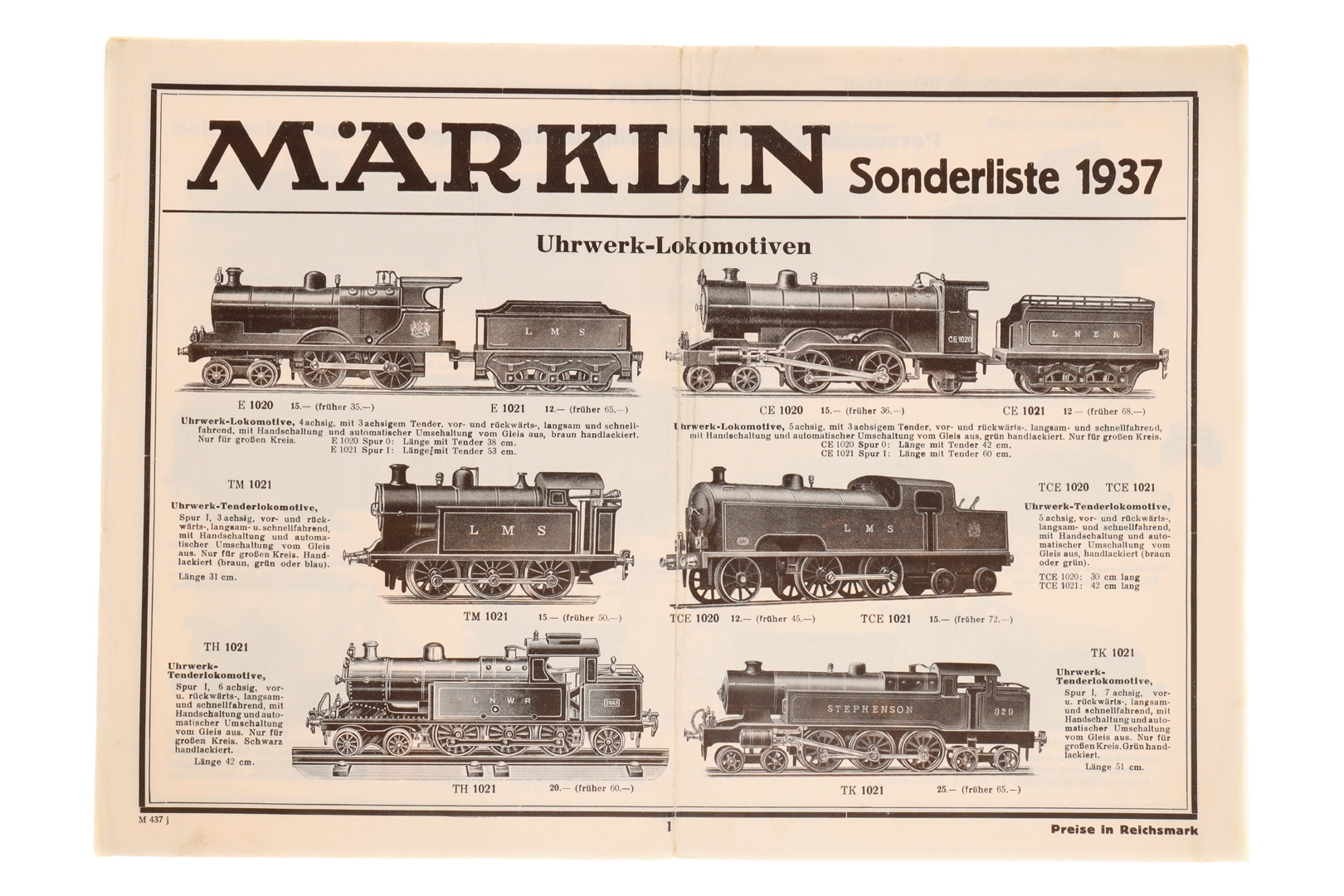 Märklin Sonderliste 1937, zum Aufklappen, mit 5 Seiten, Alterungsspuren, Z 2-3