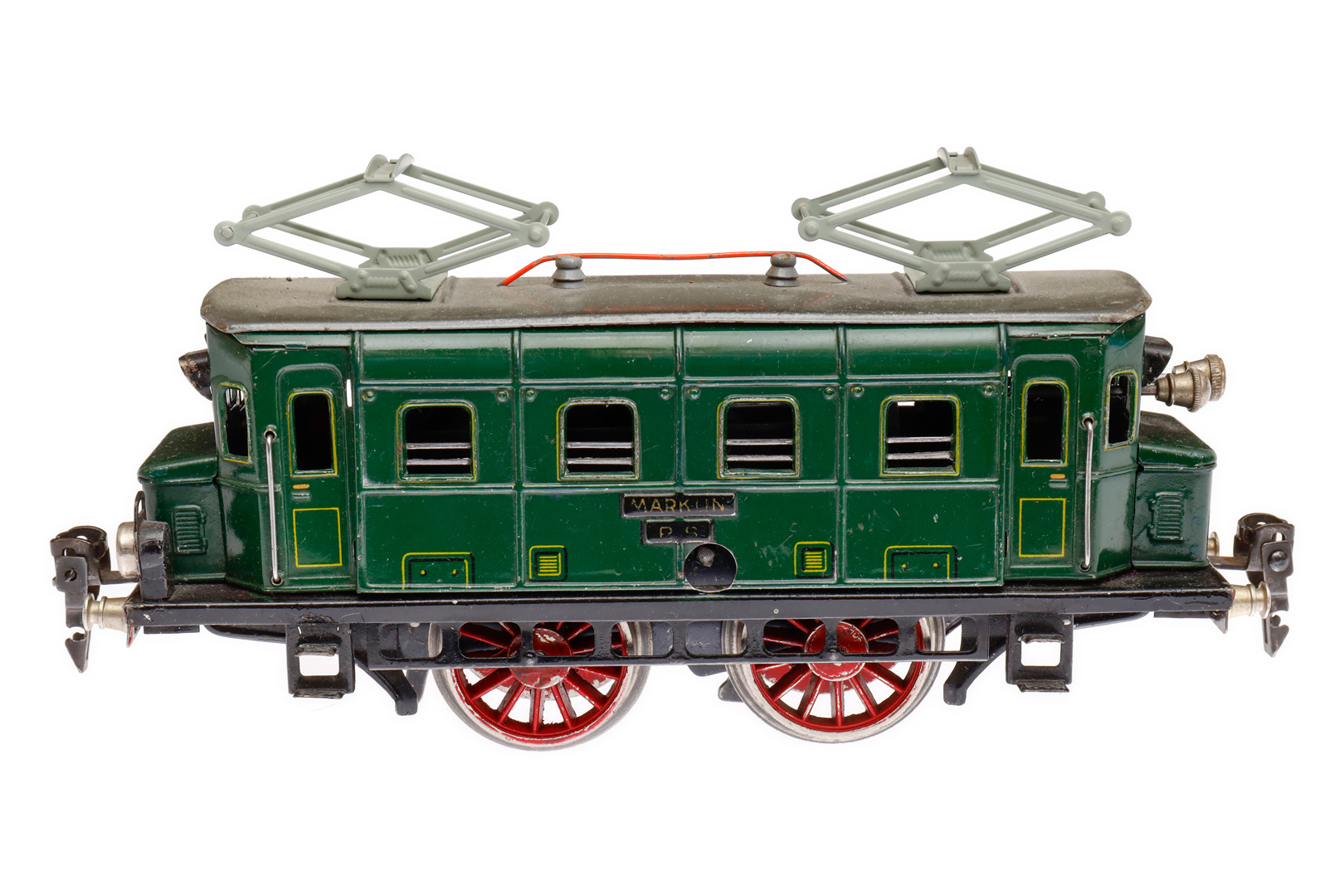 Märklin E-Lok RS 910, Spur 0, Uhrwerk intakt, grün, mit 2 imit. Stirnlampen, LS tw ausgeb., gealterter Lack, Z 3