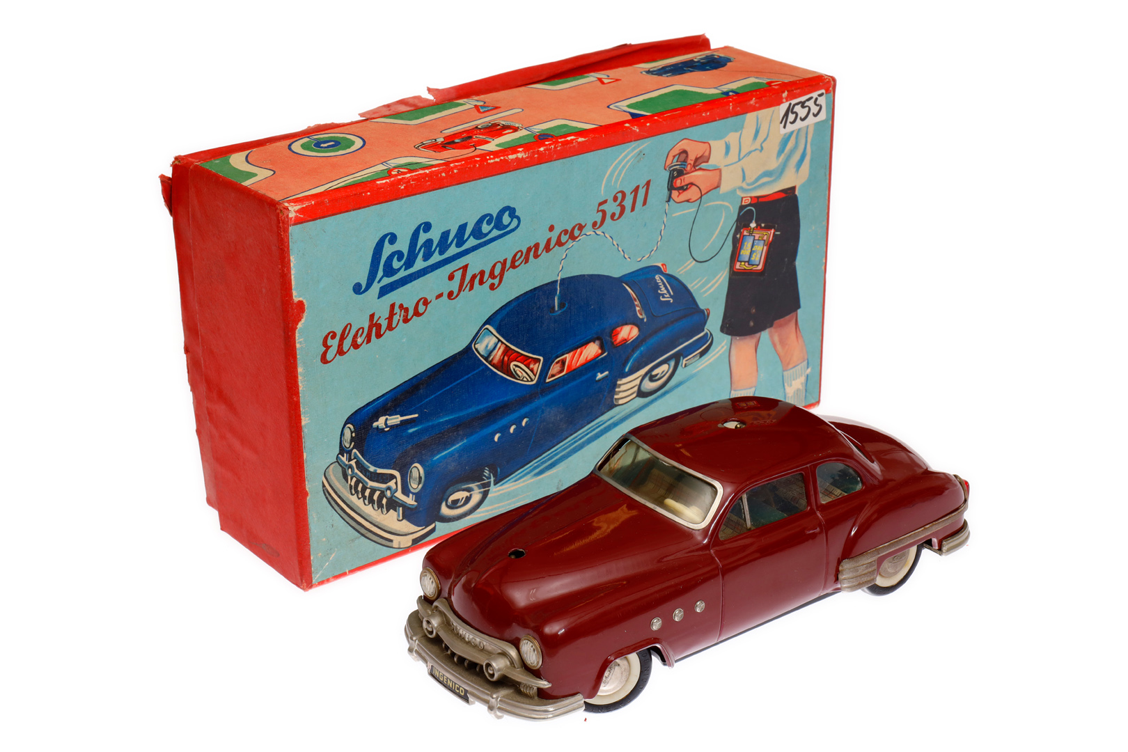 Schuco Auto Elektro Ingenico 5311, weinrot, LS und Alterungsspuren, L 21,5, im besch. OK, ohne Zubehör, Z 3