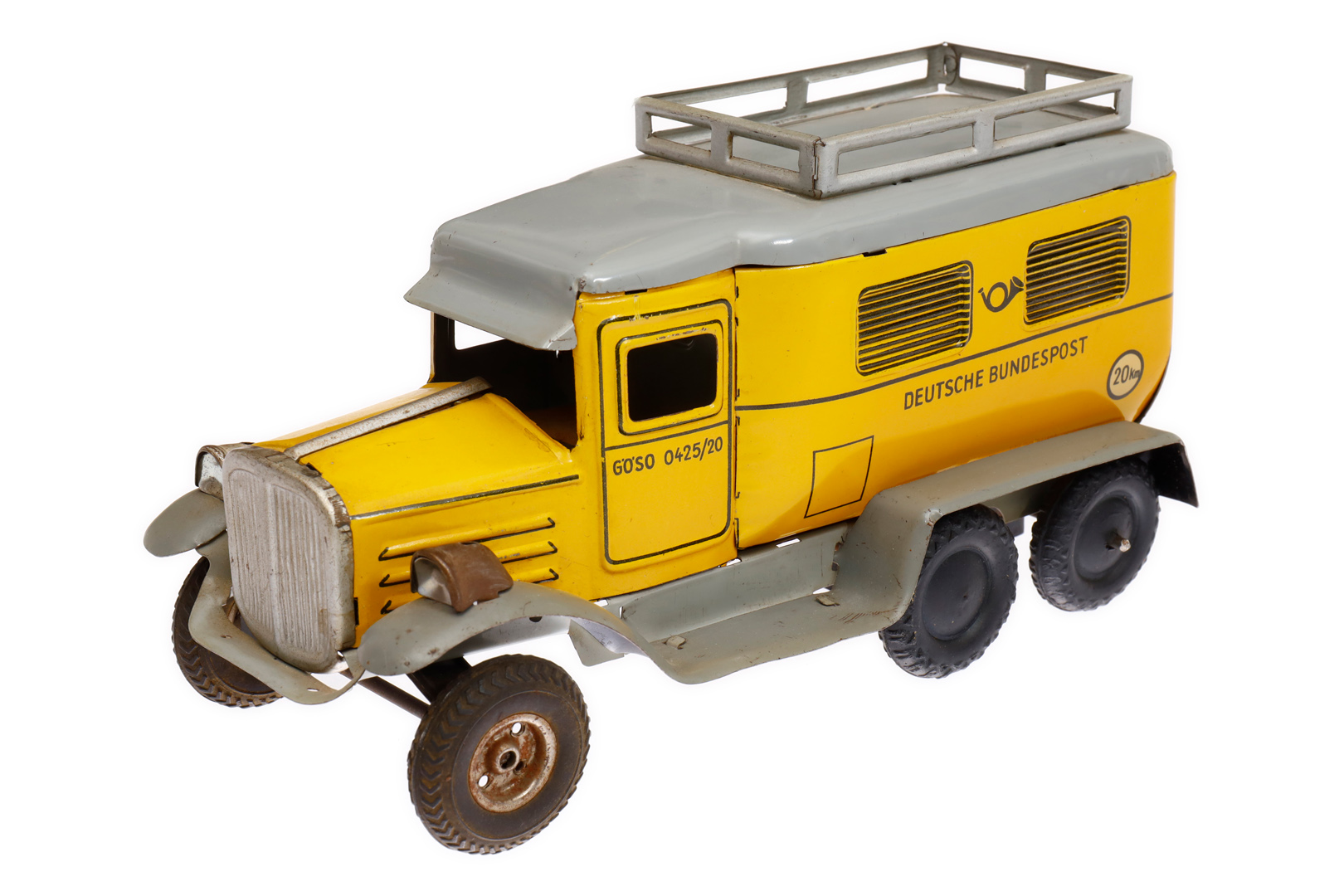 Göso Post-LKW, Blech, CL, Uhrwerk intakt, LS und Alterungsspuren, L 20, Z 3