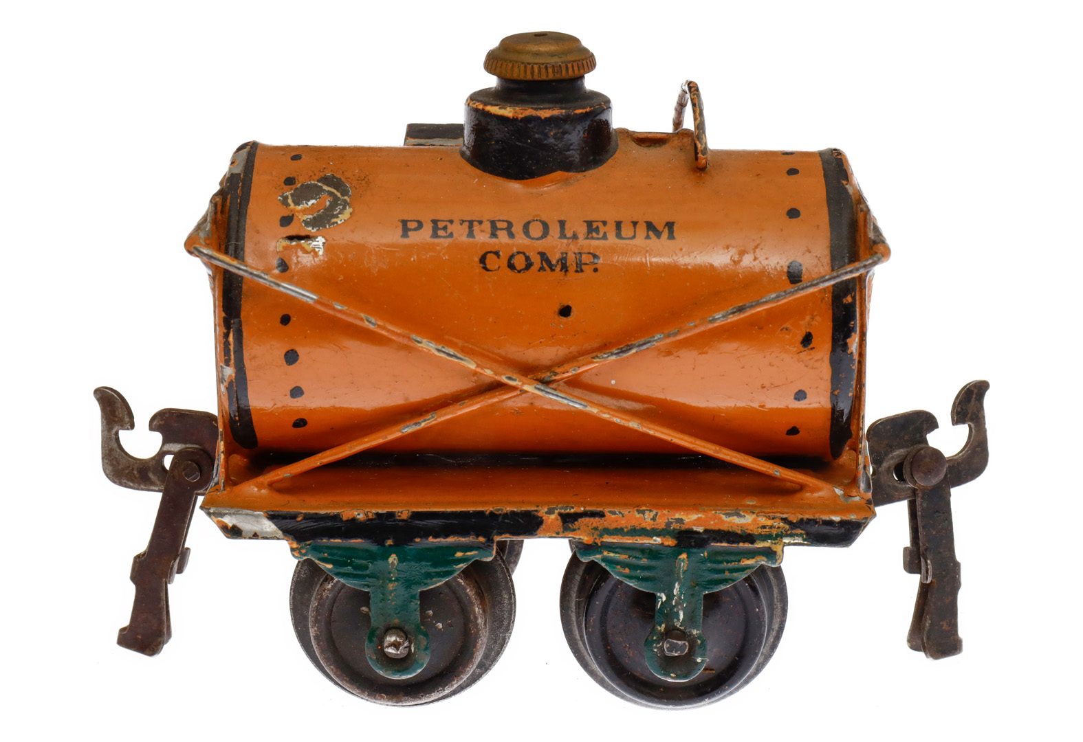 Märklin Petroleumwagen 1812, Spur 0, uralt, HL, mit 2 Löchern im Kessel, LS und gealterter Lack, L 8, Z 3