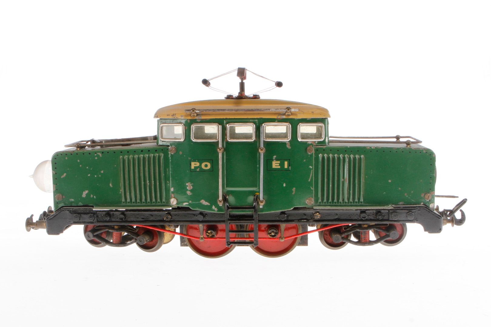 Edobaud E-Lok, Spur 0, elektr., 2-Leiter, grün, mit 1 el. bel. Stirnlampe, Schleifer lose, LS, Z 3