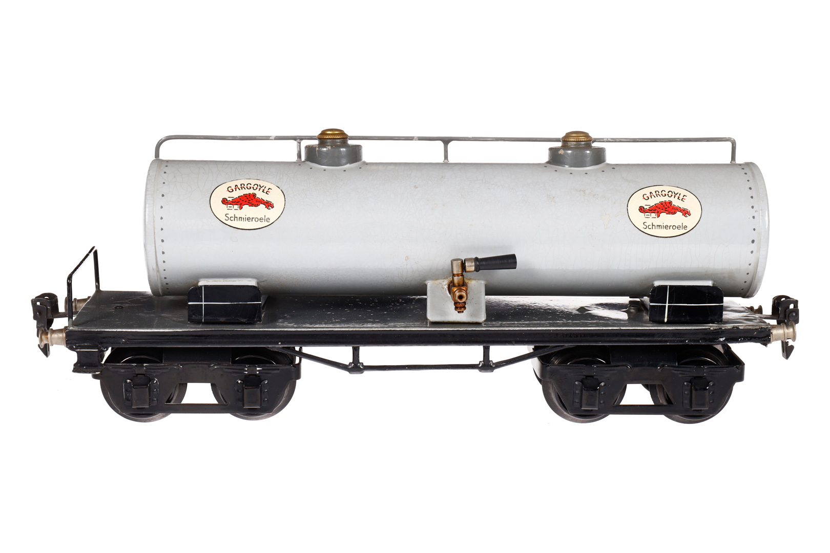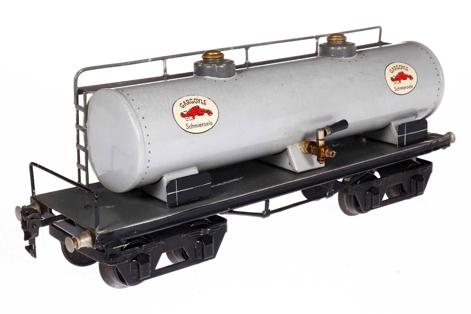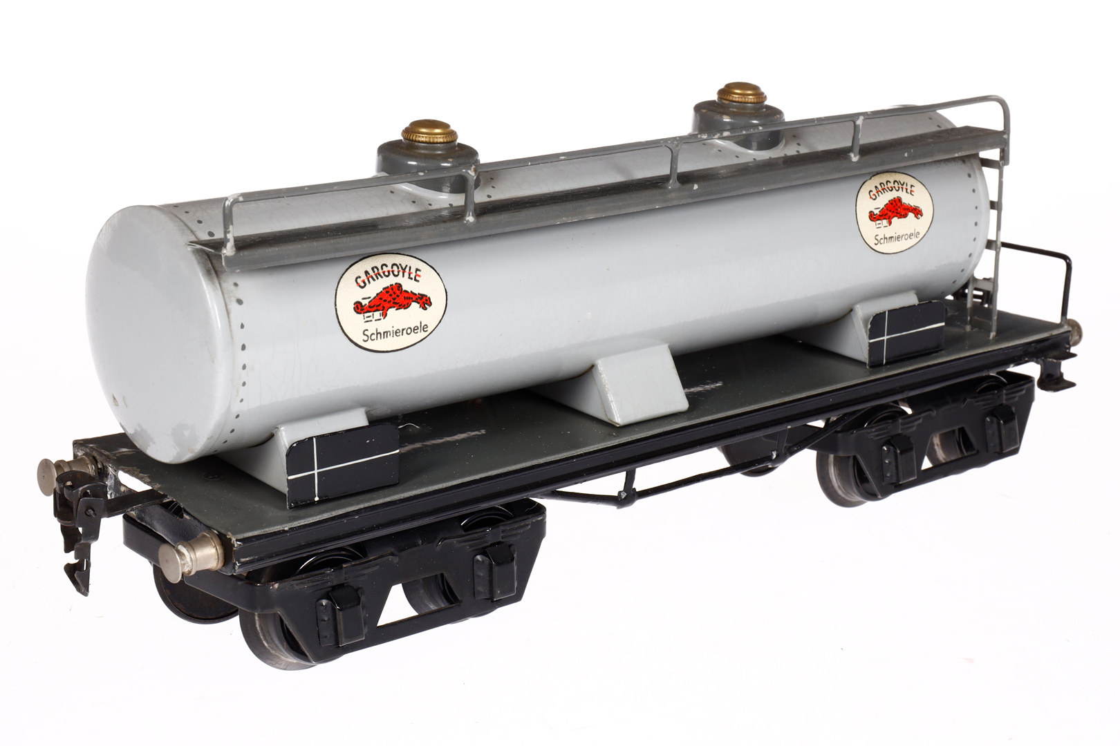Märklin Gargoyle Kesselwagen 1954, Spur 1, HL, 1 Pufferbohle tw besch., LS tw ausgeb., gealterter Lack, L 31,5, sonst noch Z 2