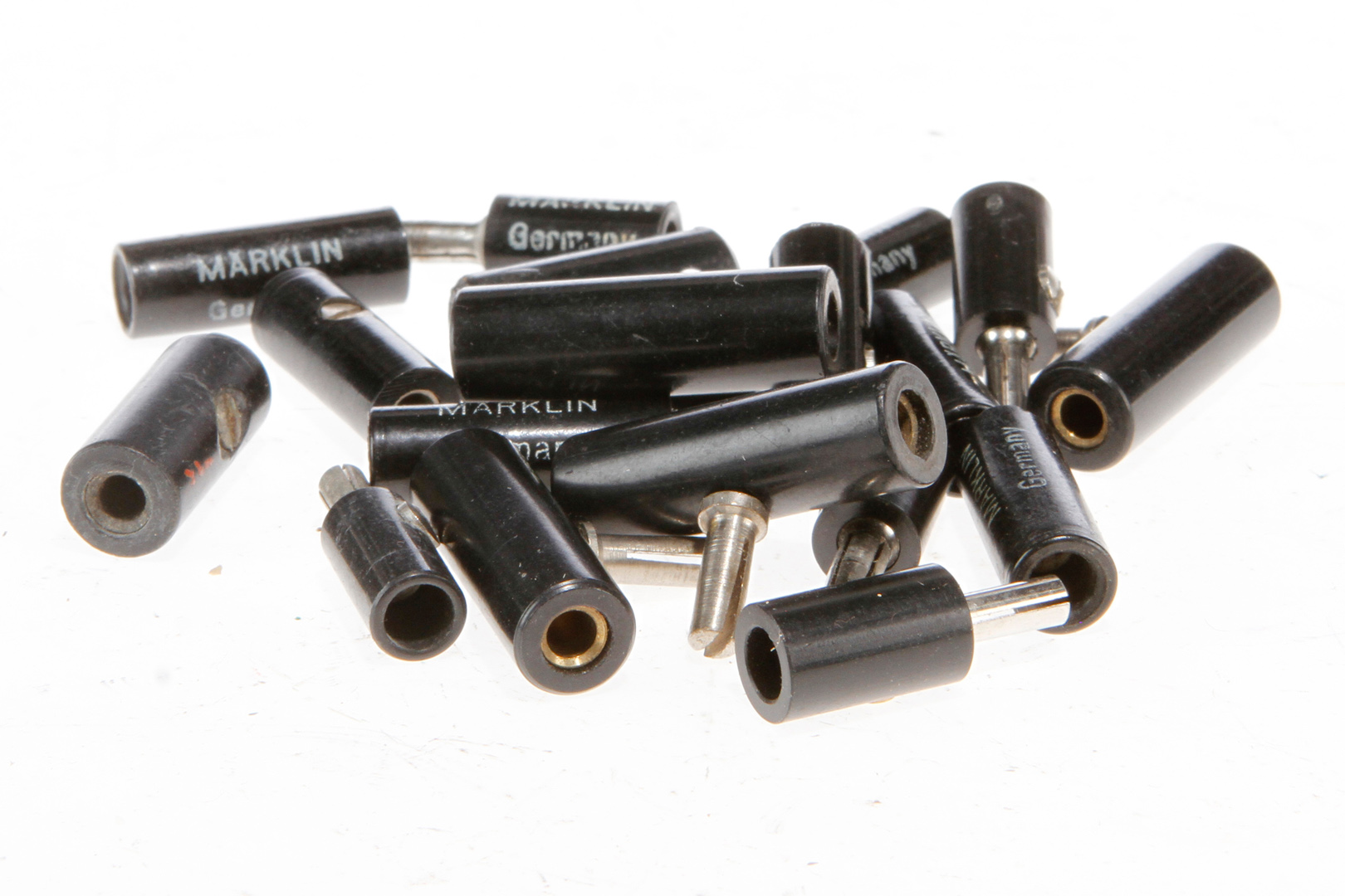 Konv. Märklin Stecker und Muffen, darunter 4 T-Stücke, Alterungsspuren