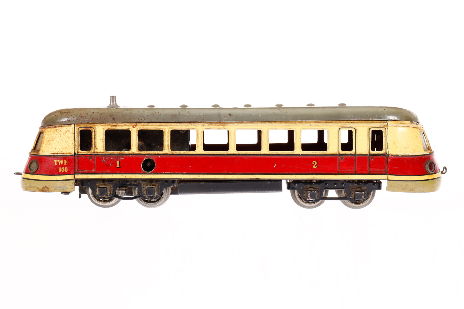 Märklin Triebwagen TWE 930, Spur 0, Uhrwerk intakt, creme/rot, RS, NV, zum Herrichten