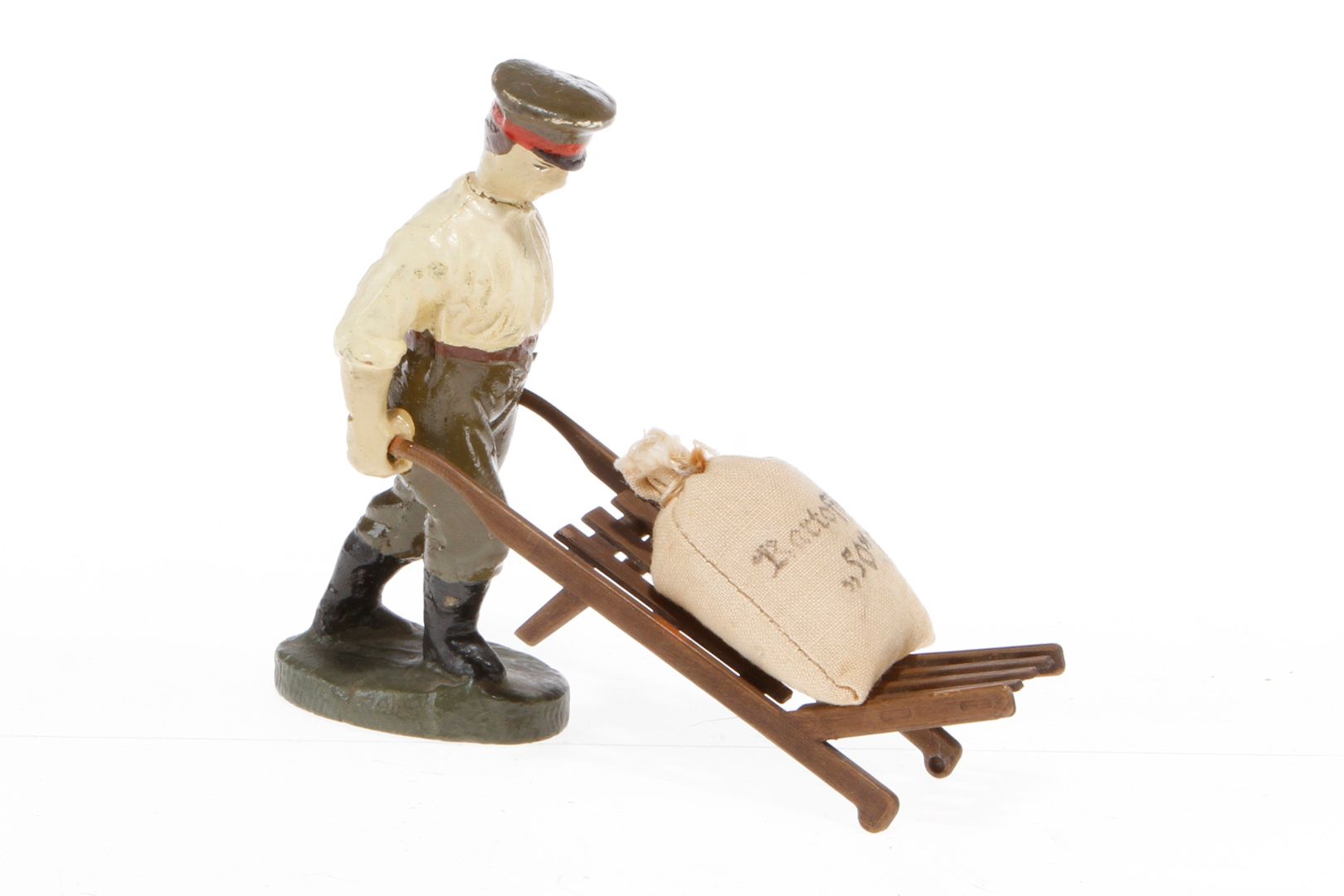 Elastolin Träger, Masse, HL, dazu Kunststoff-Karre und Sack, H 9, Z 3