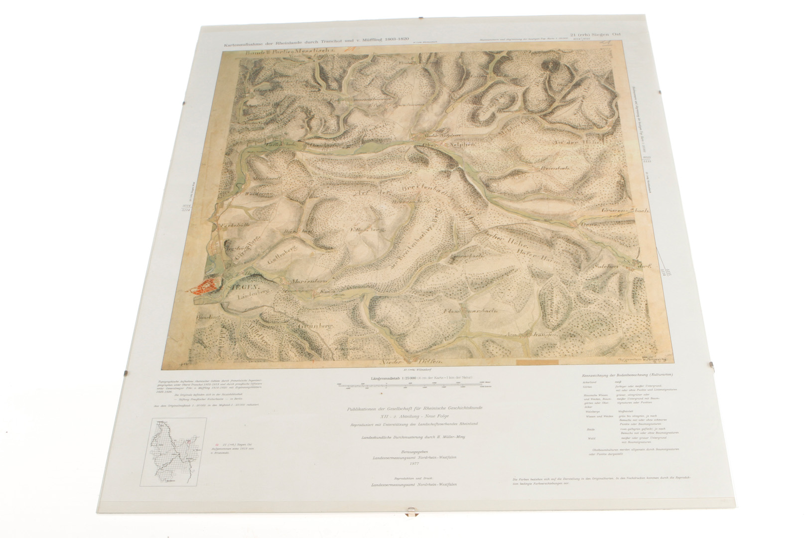 Kartenaufnahme der Rheinlande 1803-1820, hinter Glas, 60 x 50