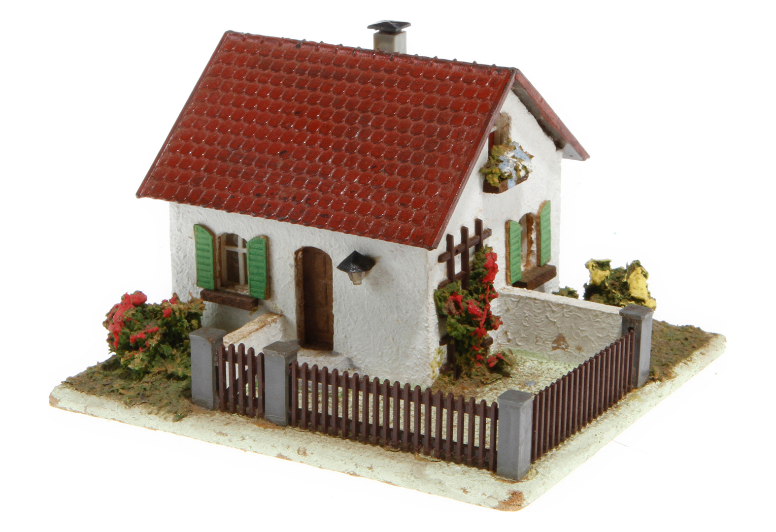 CM Creglinger Einfamilienhaus 349, Spur H0, Holz/Kunststoff, bemalt, mit eingezäuntem Garten, LS und Alterungsspuren, L 9,5, sonst Z 2