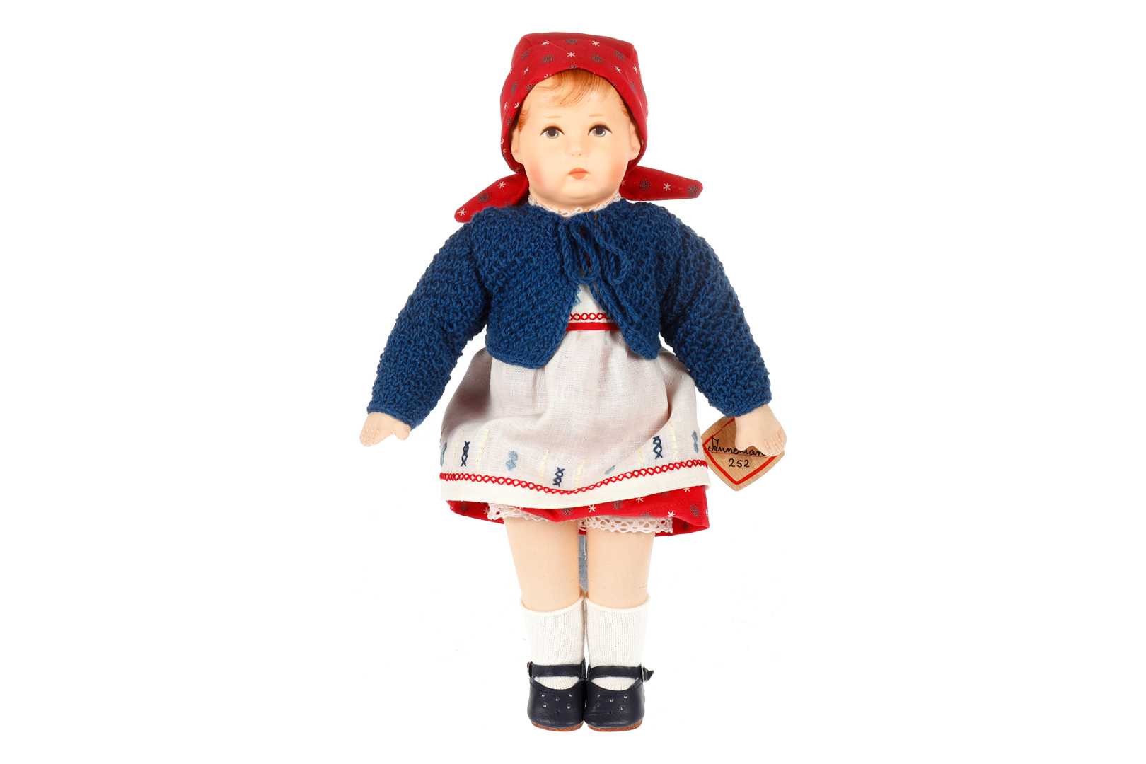 Käthe Kruse Puppe 35 H, ”Annemarie”, Nr. 252, ”kleine Puppe I”, neuere Produktion, Kunststoffkopf, Original-Kleidung, Original-Etikett, Z 2
