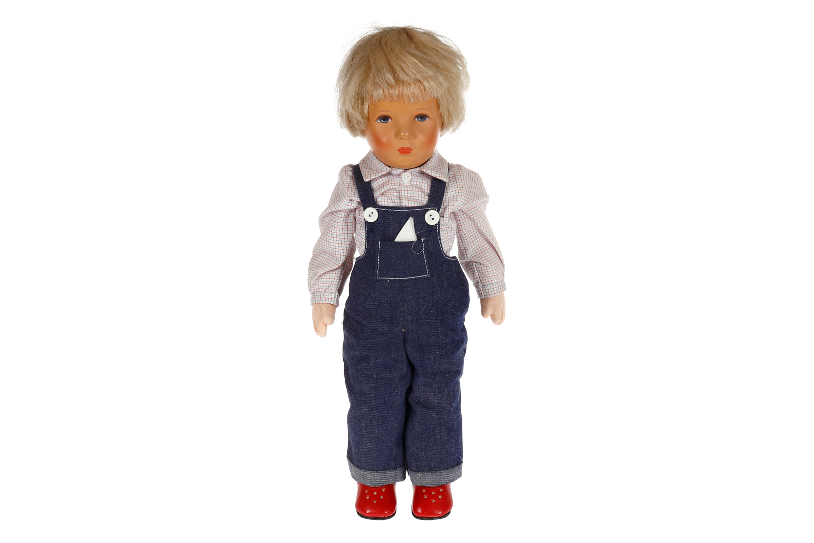 Käthe Kruse Puppe 35 H, ”kleiner Friedebald”, neuere Produktion, Kunststoffkopf, Original-Kleidung, Z 2