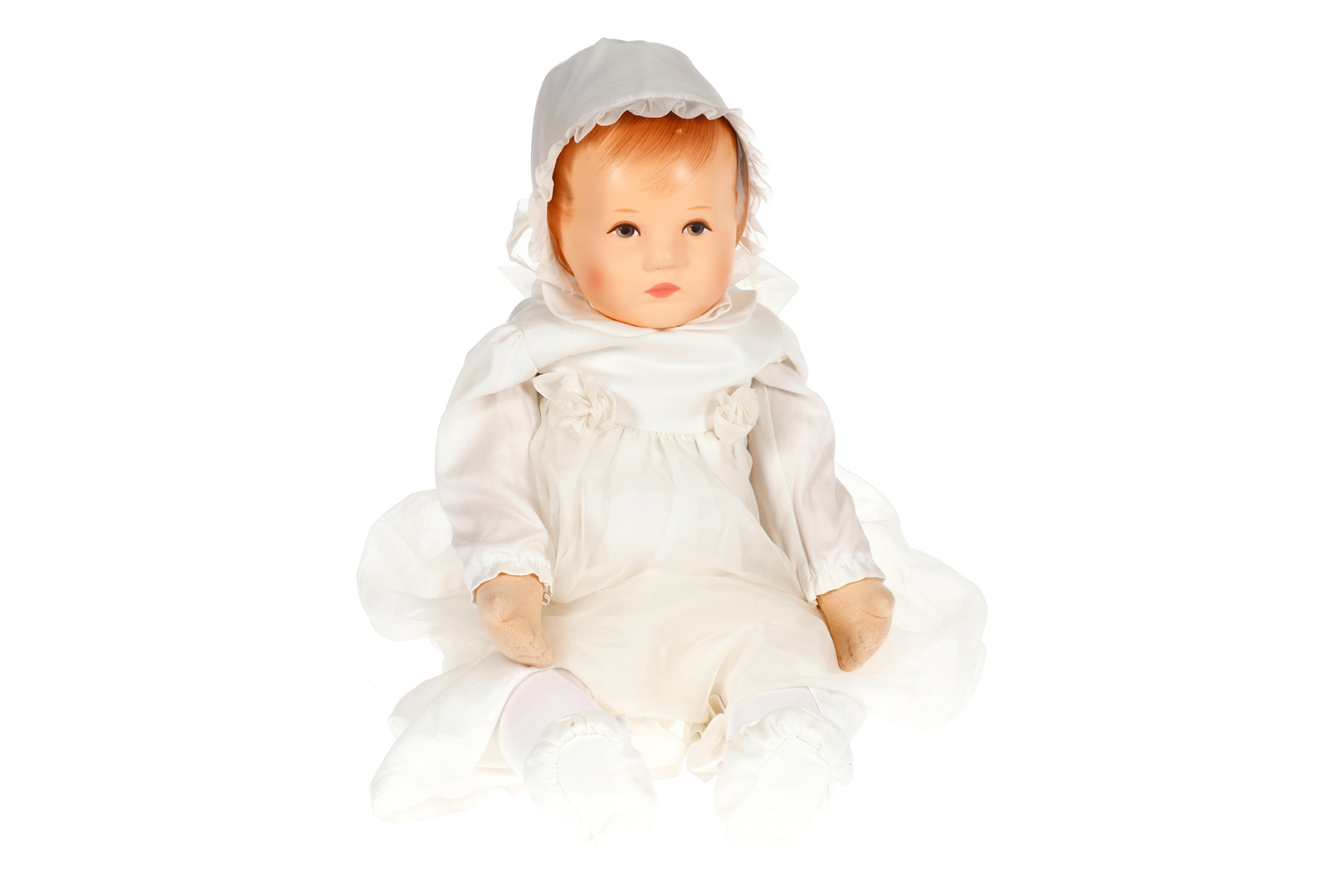 Käthe Kruse Du Mein, neuere Produktion, Kunststoffkopf, beschwerter Körper, Original-Kleidung, an der Stirn minimal berieben, H 50 cm, Z 2