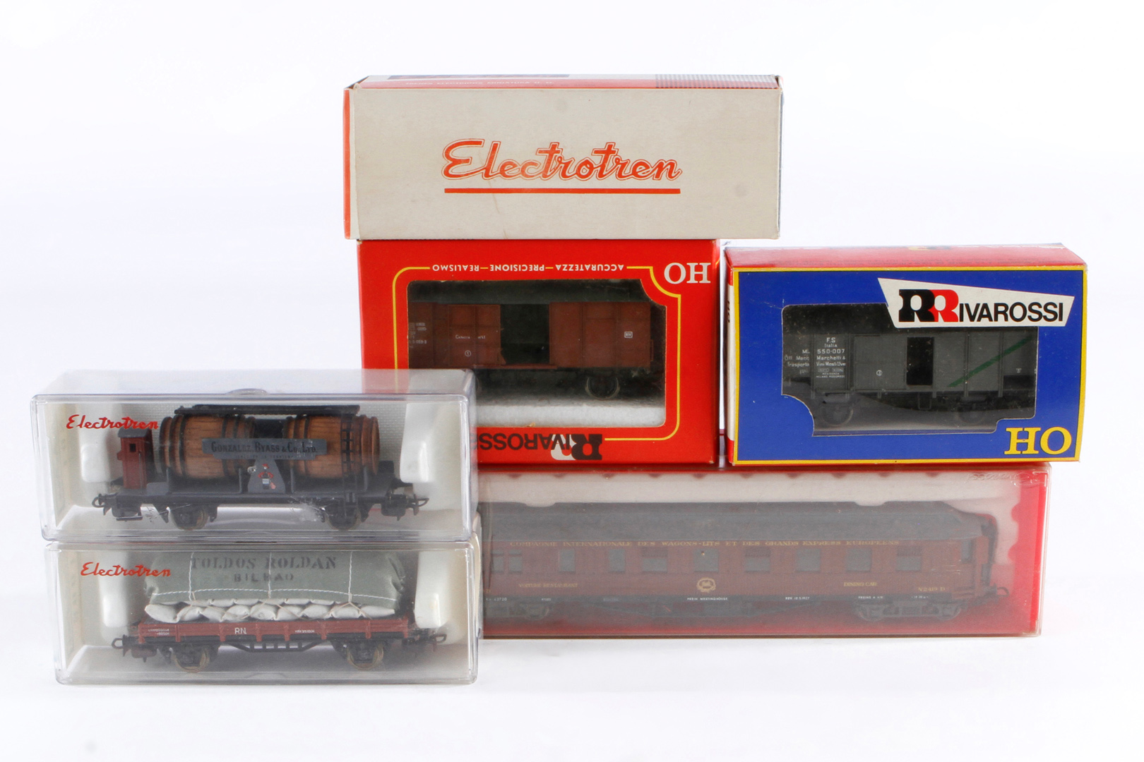 3 Electrotren und 3 Rivarossi Wagen, Spur H0, Alterungsspuren, je im tw besch. und NV OK, Z 3