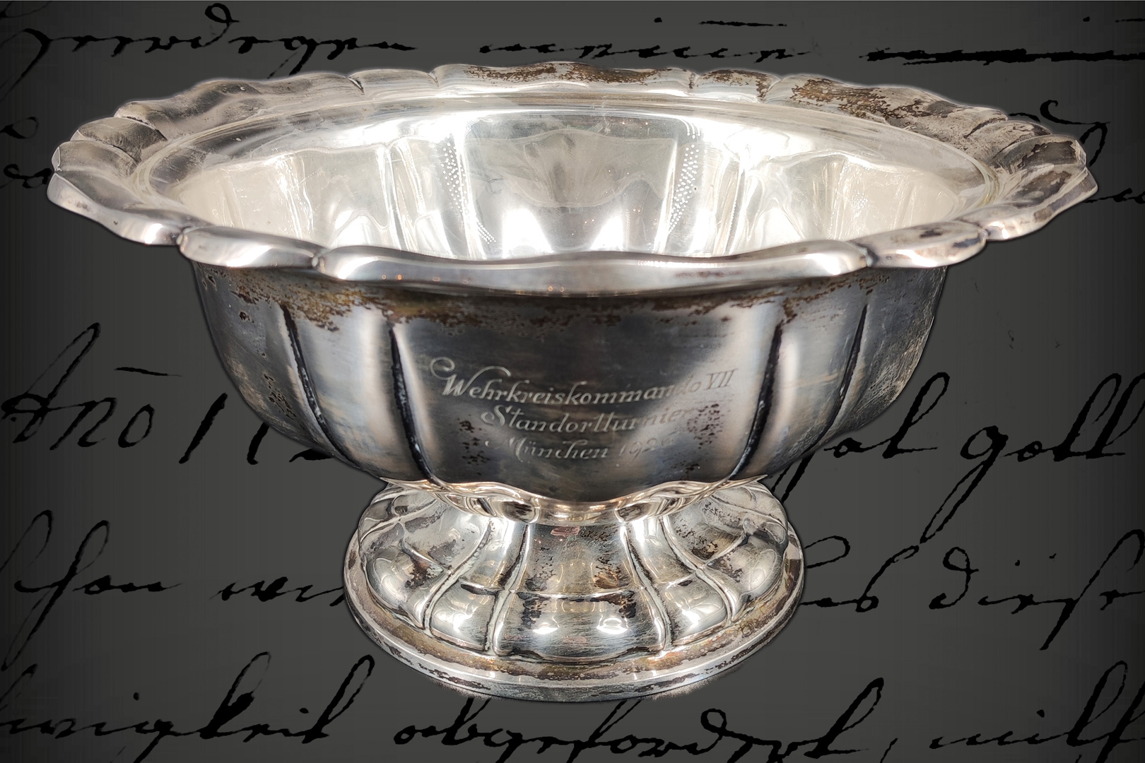 Pokal mit Glaseinsatz, wohl Silber, graviert ”Wehrkreis-Kommando VII Standortturnier München 1926”, Durchmesser 28 cm