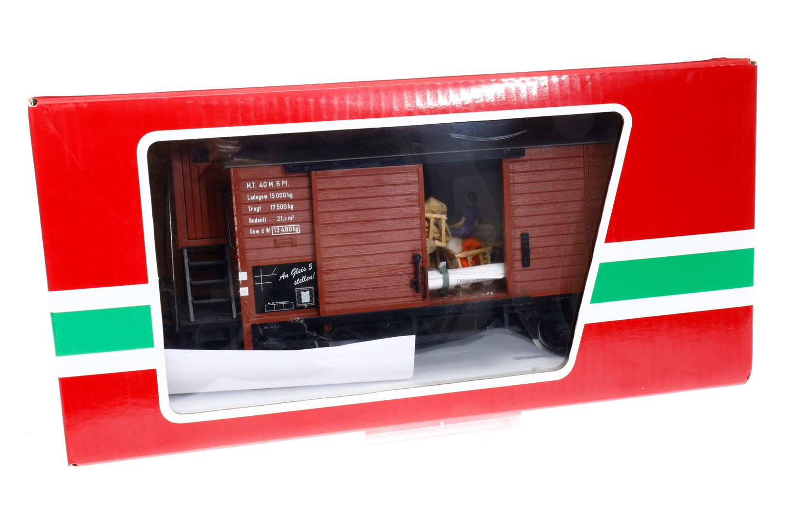 LGB ged. Güterwagen 43234, Spur G, braun, innen mit Ladung (geklebt), Alterungsspuren, im leicht besch. OK, sonst Z 2