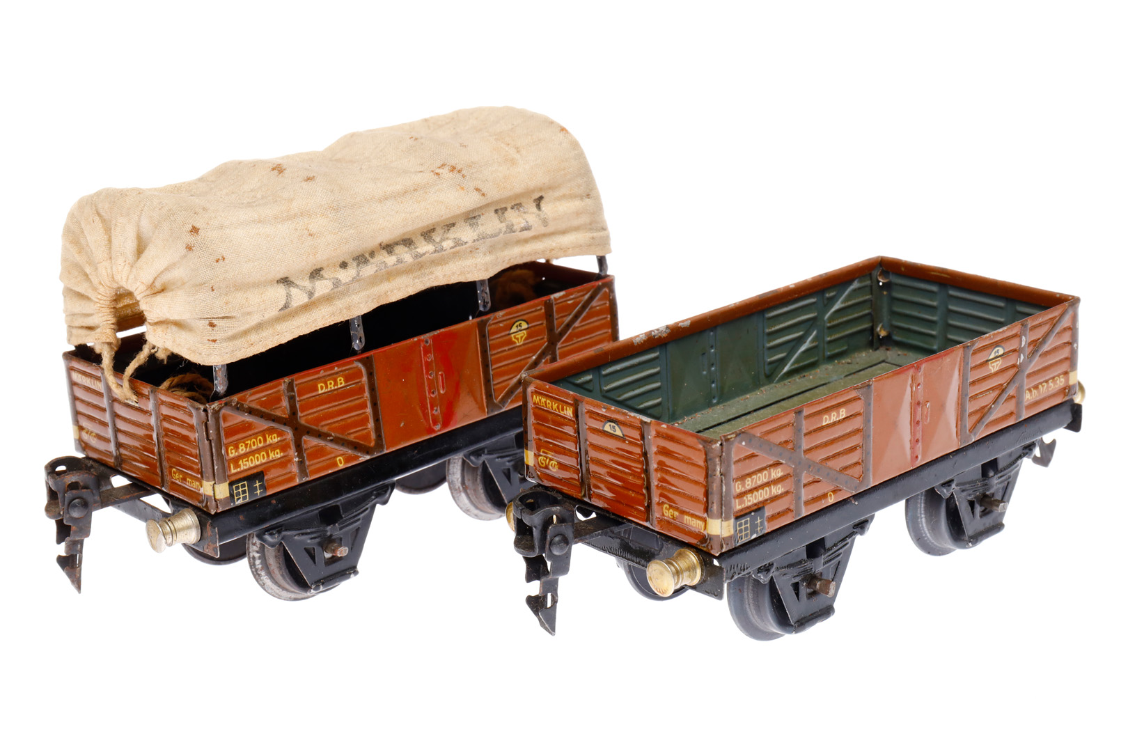 2 Märklin Güterwagen 1661 und 1663, Spur 0, CL, LS und gealterter Lack, L 13, Z 3