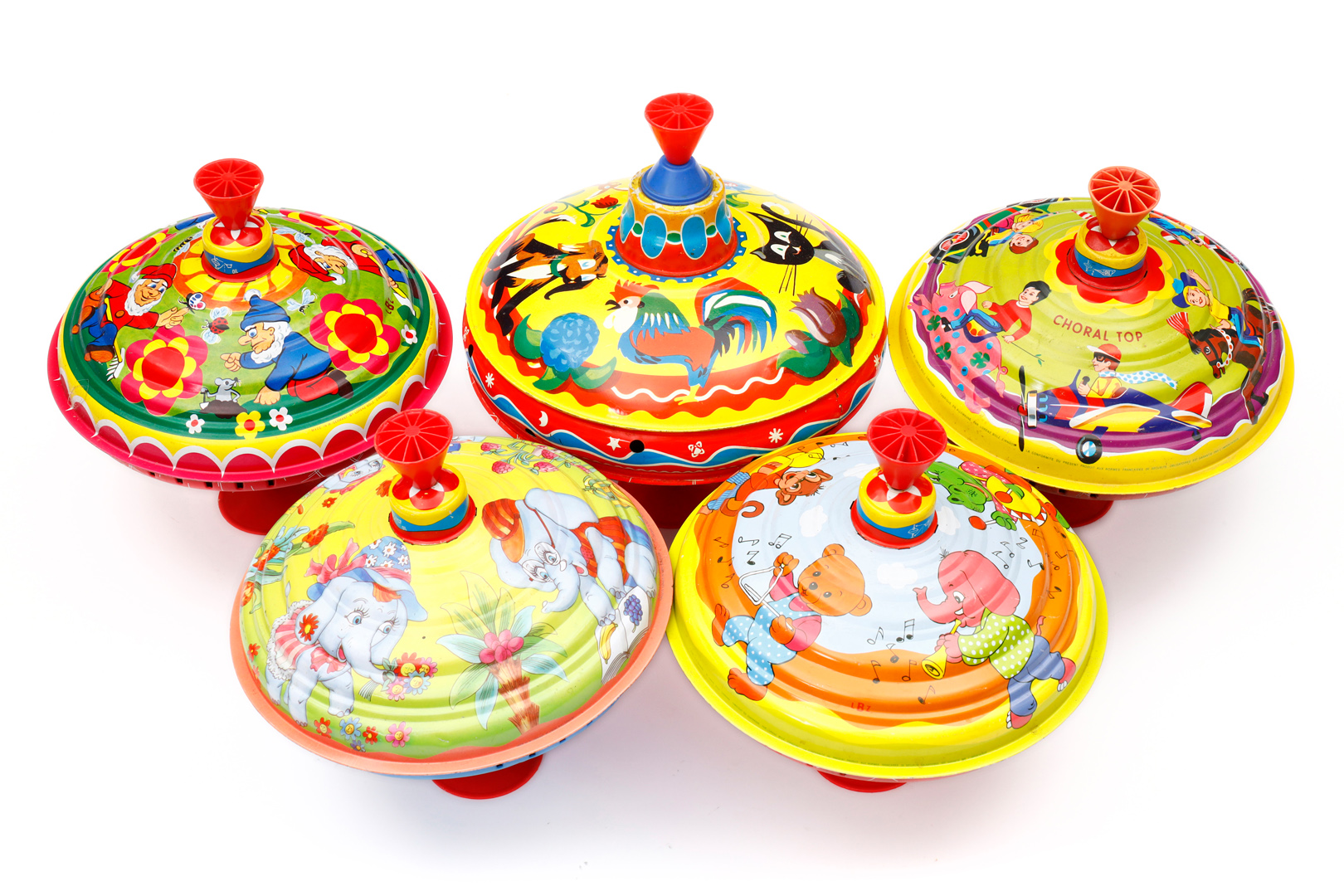 5 Kreisel, Blech, tw LBZ, Western Germany, H 22-25, Z 2-3