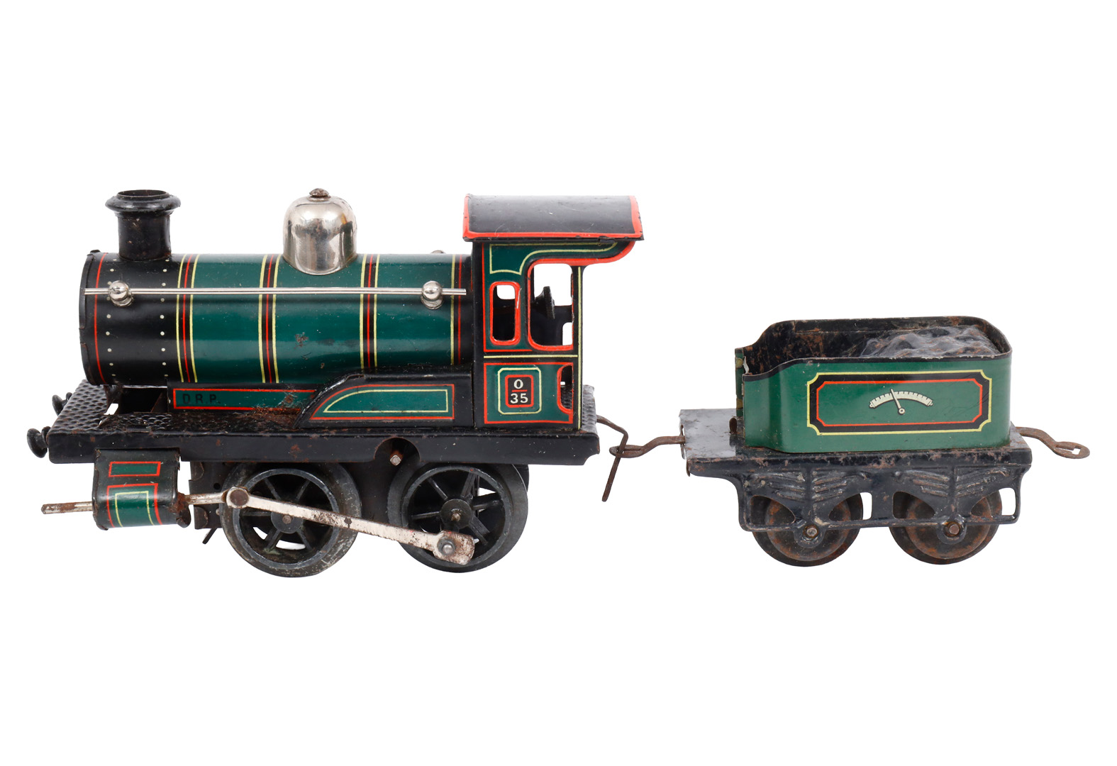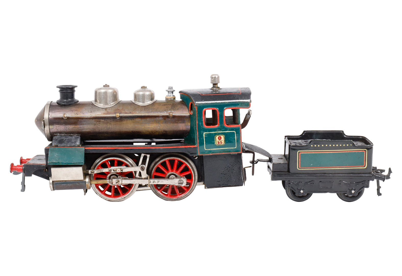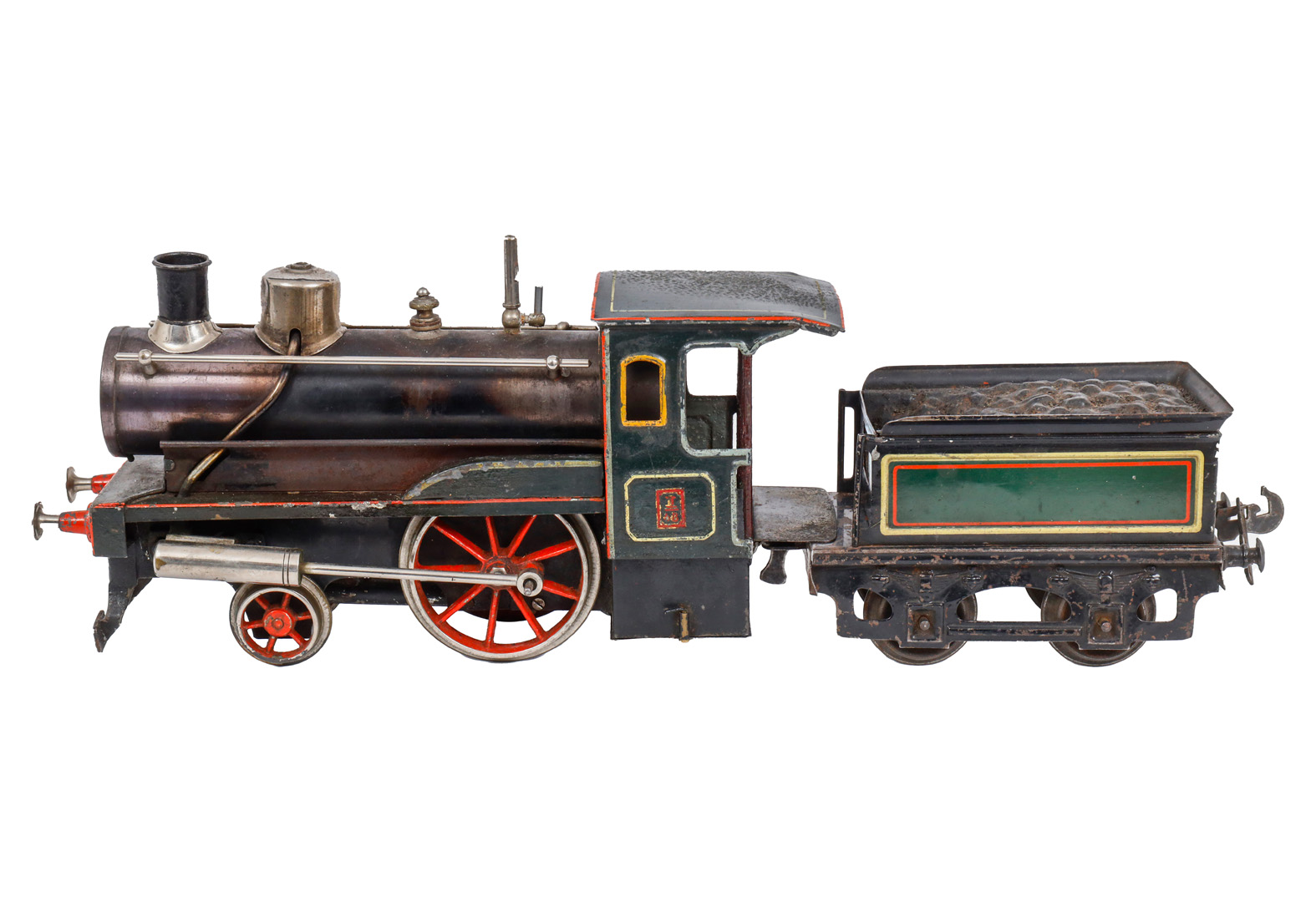 Carette 1-A Dampflok, mit fremdem 2A-Tender, Spur 0, uralt, HL, mit Pfeife und Brenner, LS, Alterungs- und Gebrauchsspuren, Z 3