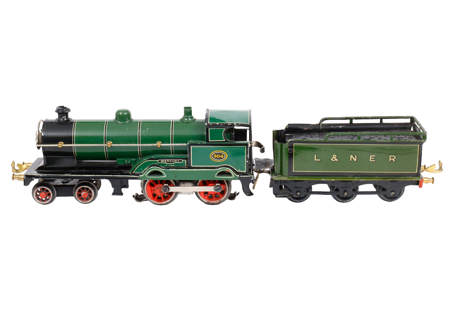 Bing englische 2-B Dampflok Nr. 504 ”Mercury”, mit 3A-Tender, Spur 0, grün CL, elektr., 1 el. bel. Stirnlampe, Führerhausdach leicht verbeult, sonst noch Z 2