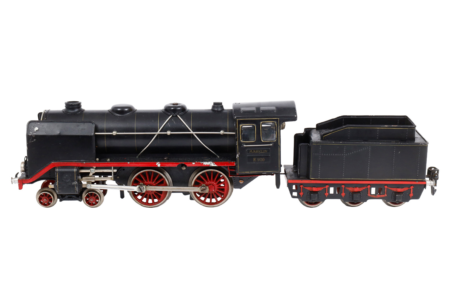Märklin 2-B Dampflok E 920, mit 3A-Tender, Spur 0, Uhrwerk intakt, leichte Alterungs- und Gebrauchsspuren, noch Z 2