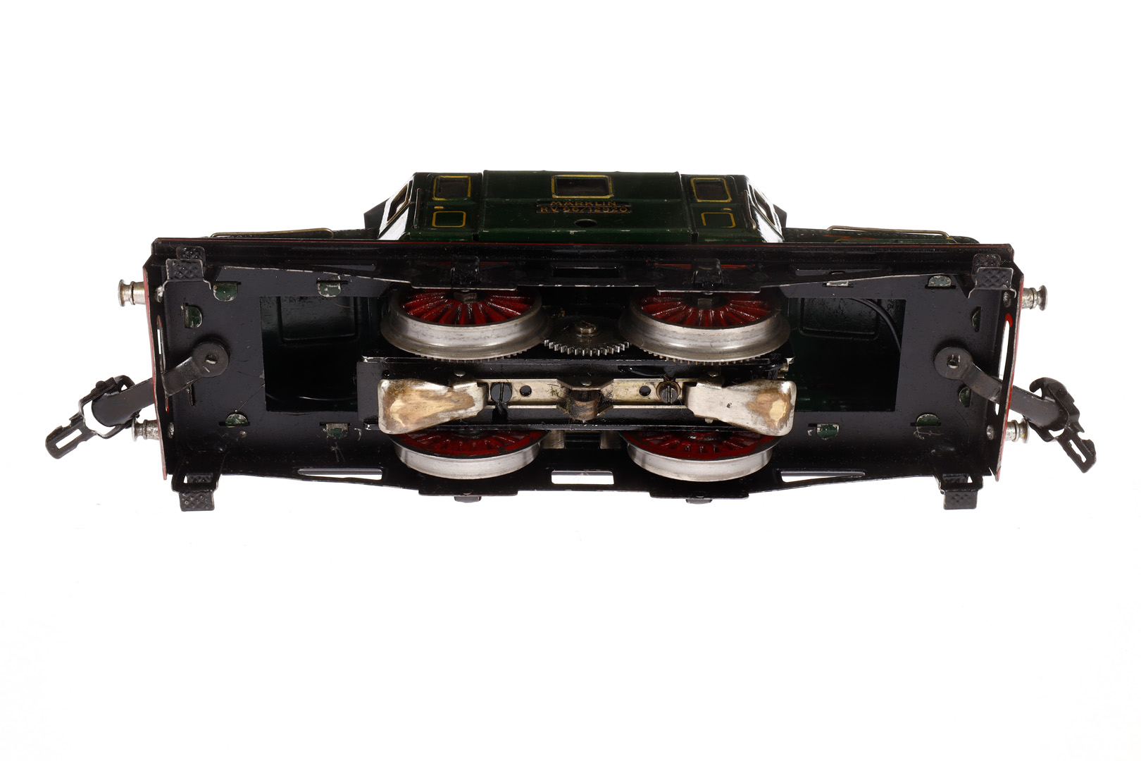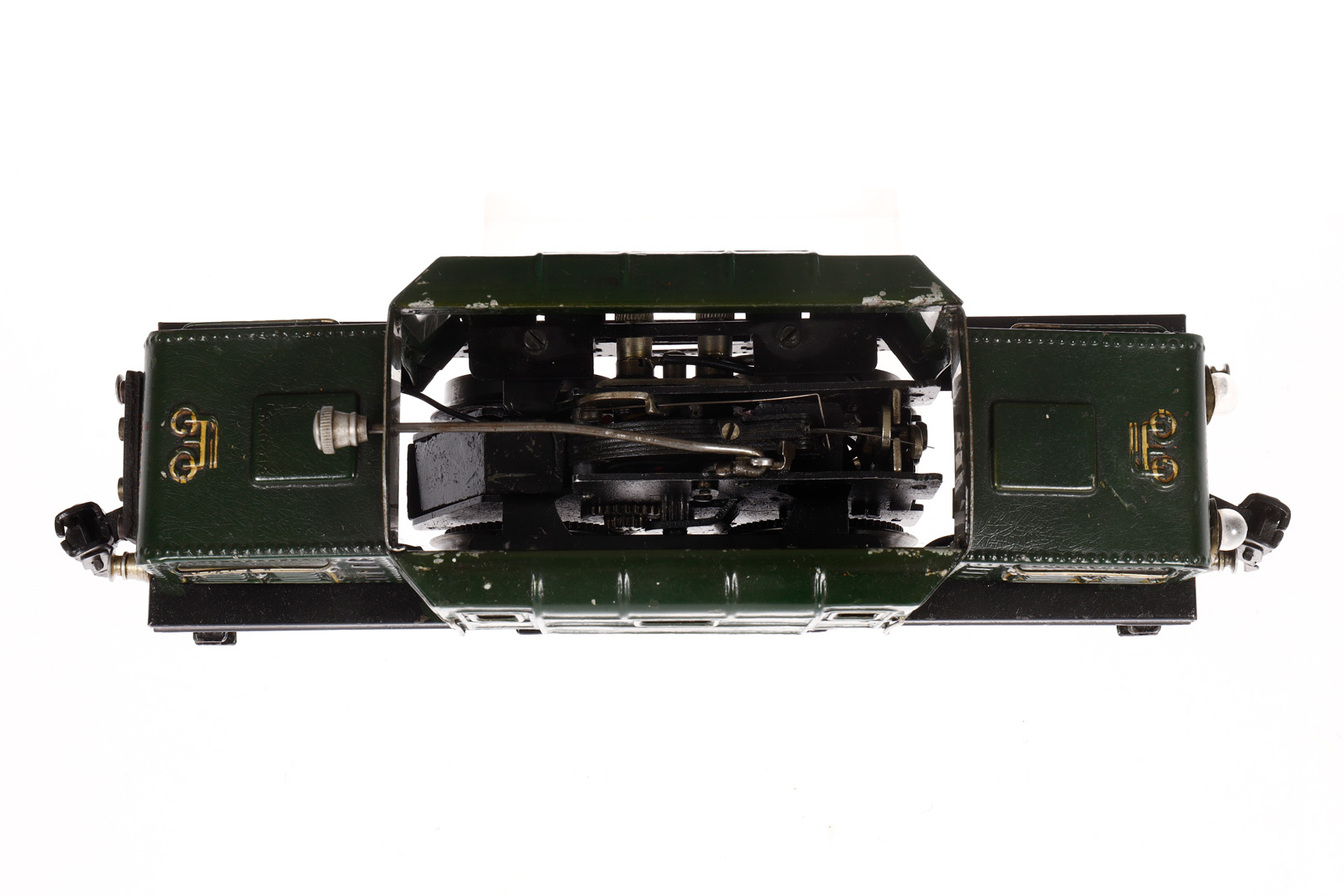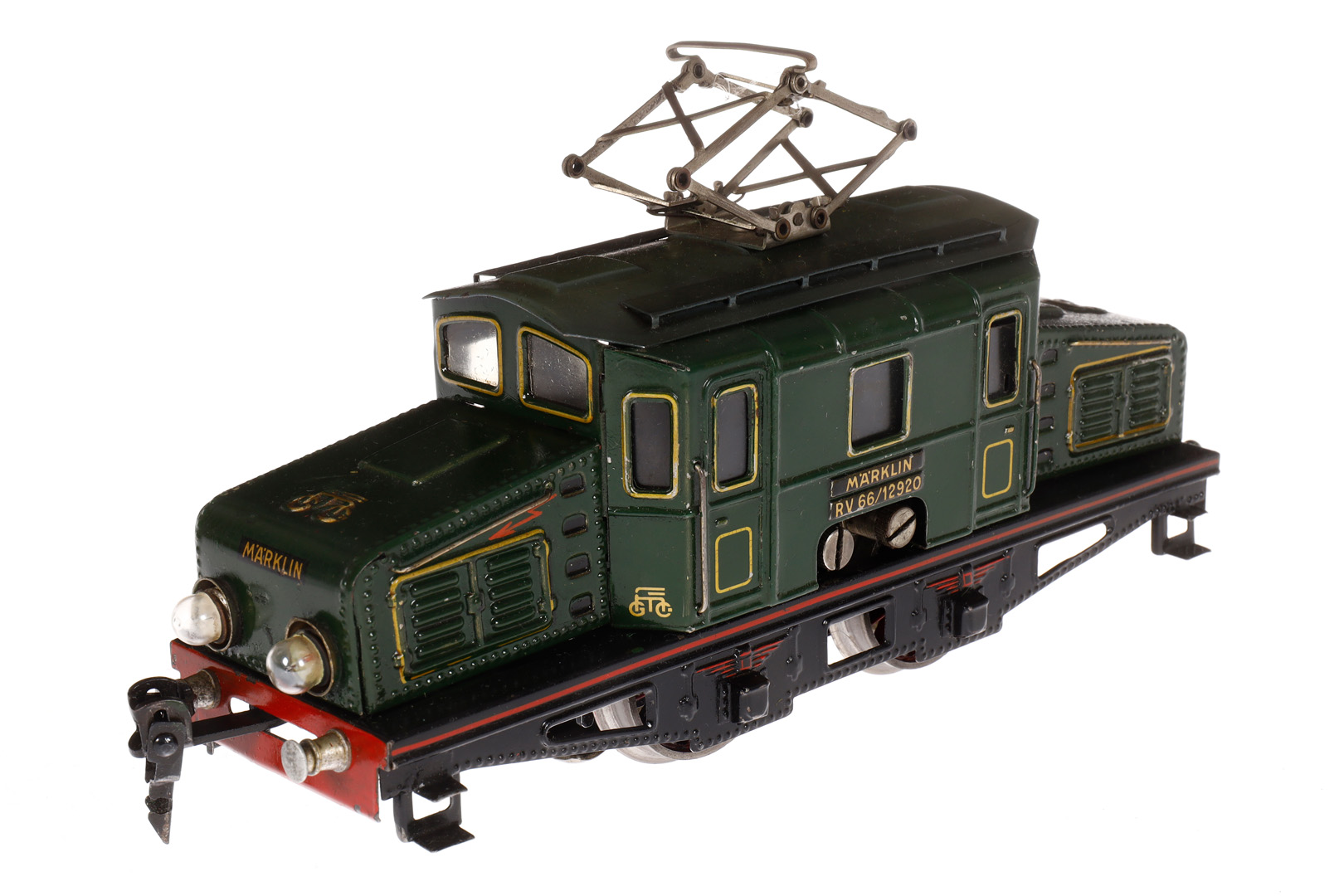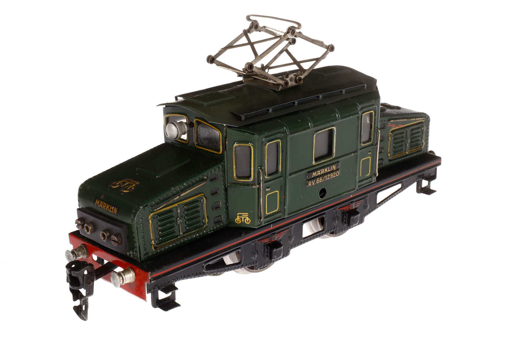 Märklin E-Lok RV 66/12920, Spur 0, elektr., grün, mit 2 el. bel. Stirnlampen, LS tw ausgeb., gealterter Lack, Abdeckung von Schaltung fehlt, Z 3
