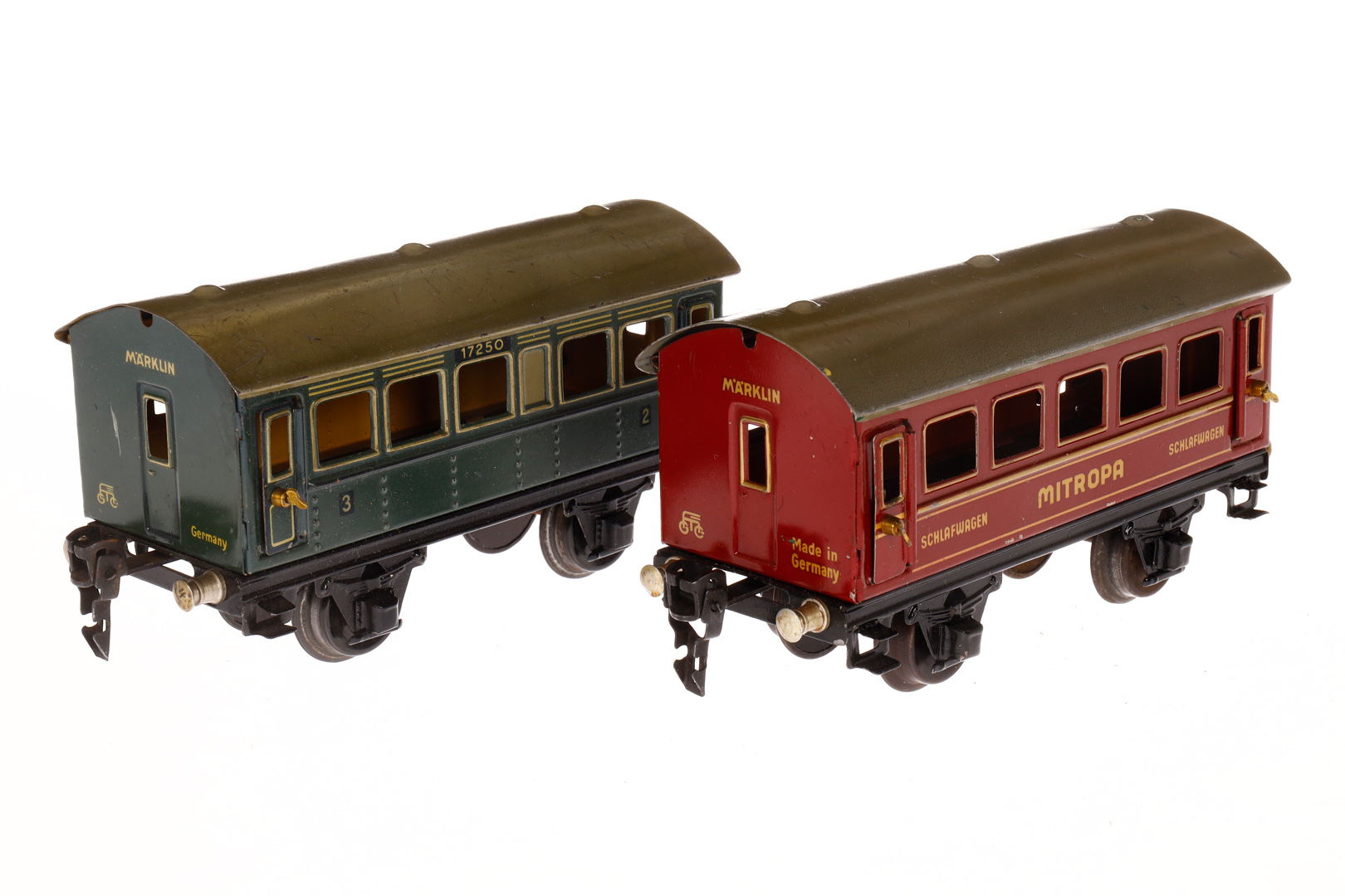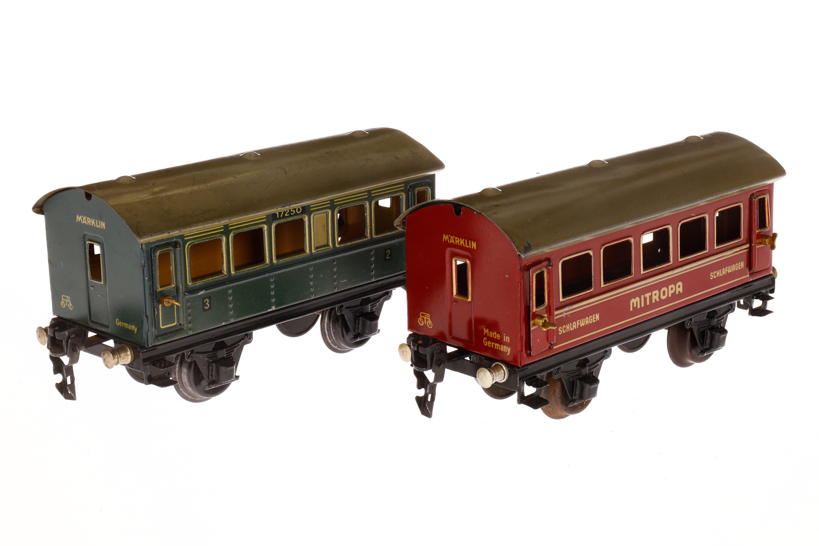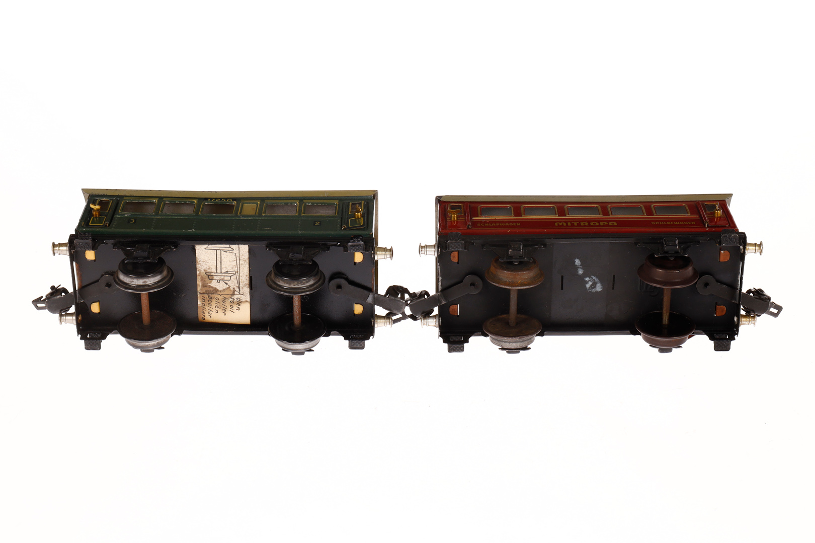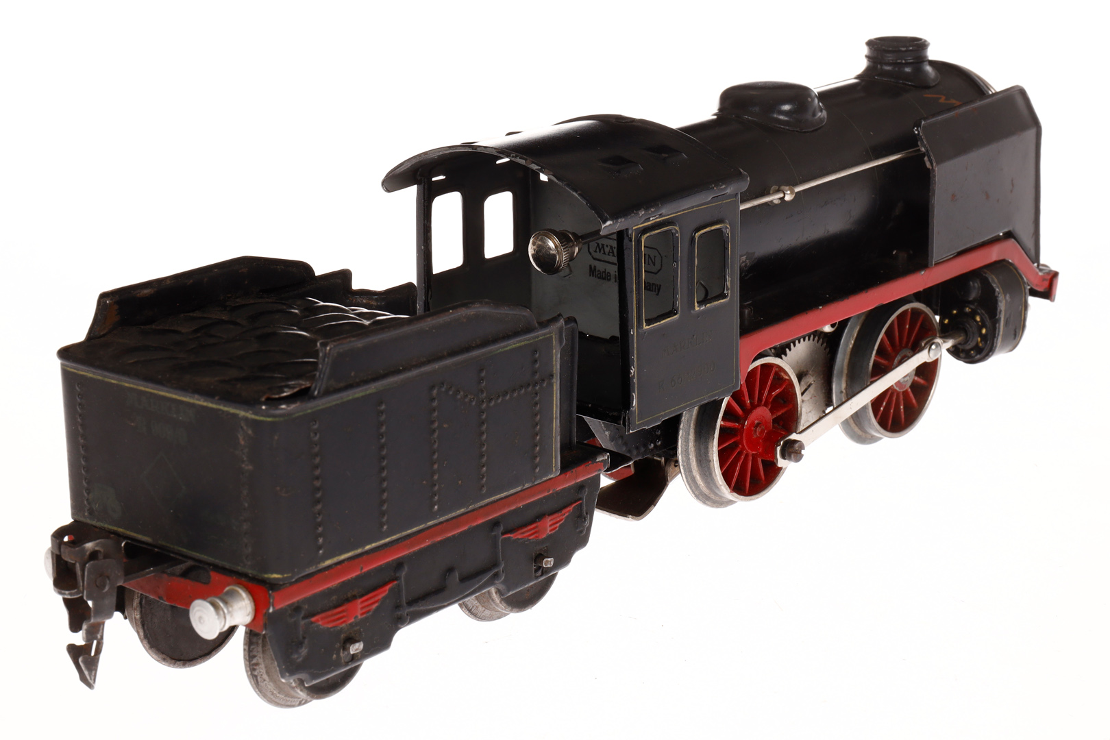 Märklin Zugpackung R 66/12900/25/3 Z, Spur 0, elektr., mit Dampflok, Tender, 2 Wagen (1 fehlt), Trafo, Stoffkabel, Anschlussstück und Schienenmaterial, LS und gealterter Lack, Wagenlänge 16,5, im tw besch. OK, sonst noch Z 2-3